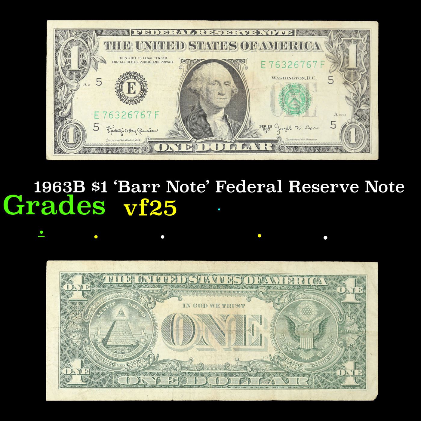 1963B $1 'Barr Note' Federal Reserve Note Grades vf+. Among the most sought-after U.S. paper money of the late 1960's are the short-lived "Barr" Notes. These distinctive $1 Federal Reserve Notes bear the signature of Joseph W. Barr, who served as Secretary of the Treasury during the last 28 days of President Lyndon B. Johnson's administration. Barr was replaced when President Nixon chose a successor. Due to Barr's short term, his signature appeared only on the $1 notes of Series 1963B.