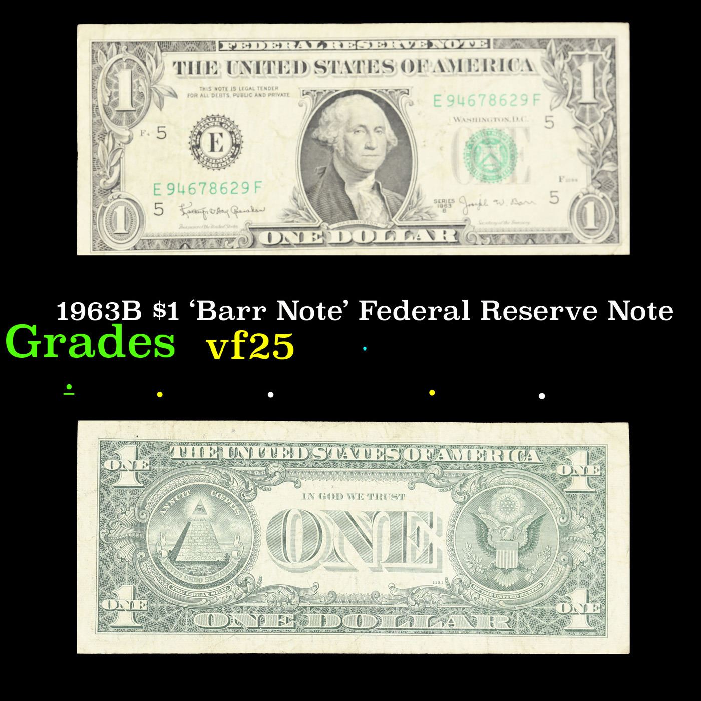 1963B $1 'Barr Note' Federal Reserve Note Grades vf+. Among the most sought-after U.S. paper money of the late 1960's are the short-lived "Barr" Notes. These distinctive $1 Federal Reserve Notes bear the signature of Joseph W. Barr, who served as Secretary of the Treasury during the last 28 days of President Lyndon B. Johnson's administration. Barr was replaced when President Nixon chose a successor. Due to Barr's short term, his signature appeared only on the $1 notes of Series 1963B.