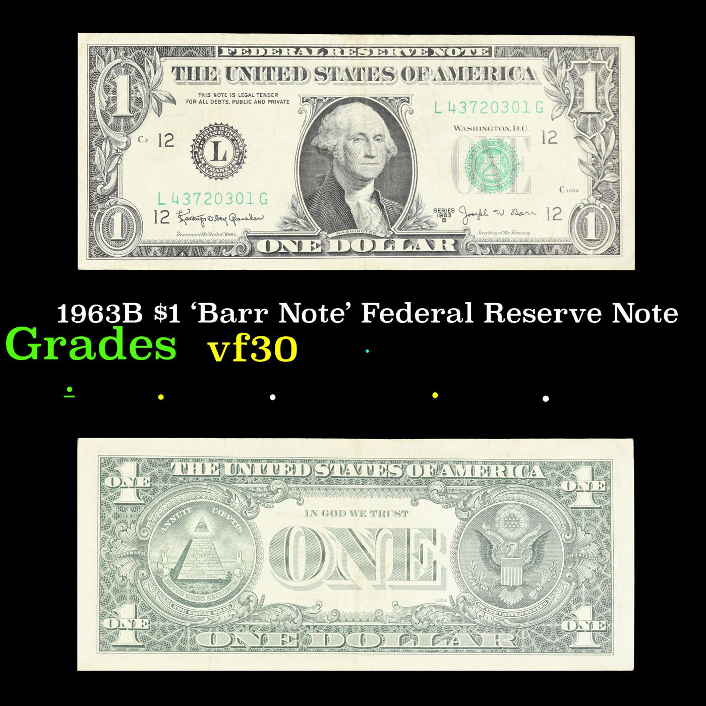 1963B $1 'Barr Note' Federal Reserve Note Grades vf++. Among the most sought-after U.S. paper money of the late 1960's are the short-lived "Barr" Notes. These distinctive $1 Federal Reserve Notes bear the signature of Joseph W. Barr, who served as Secretary of the Treasury during the last 28 days of President Lyndon B. Johnson's administration. Barr was replaced when President Nixon chose a successor. Due to Barr's short term, his signature appeared only on the $1 notes of Series 1963B.