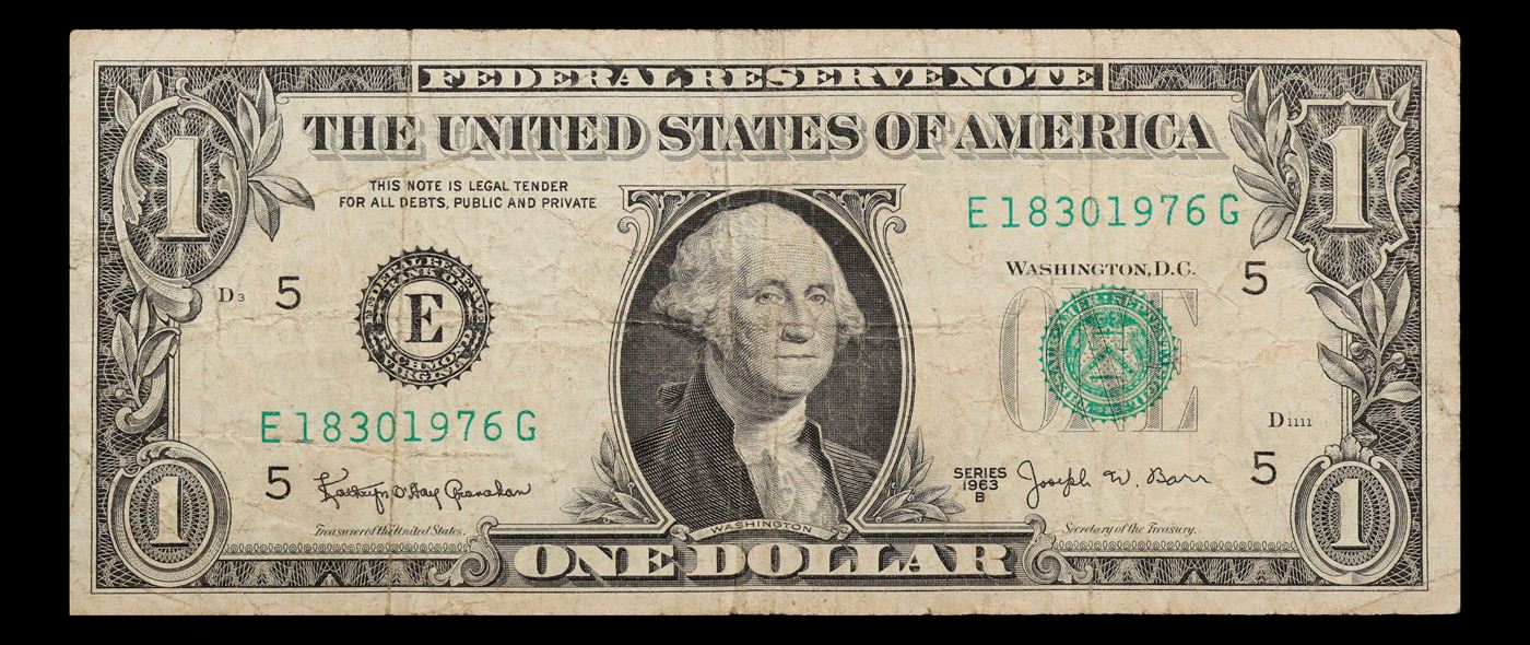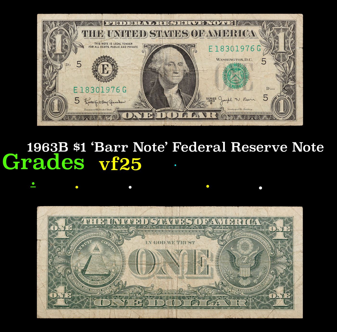 1963B $1 'Barr Note' Federal Reserve Note Grades vf+.