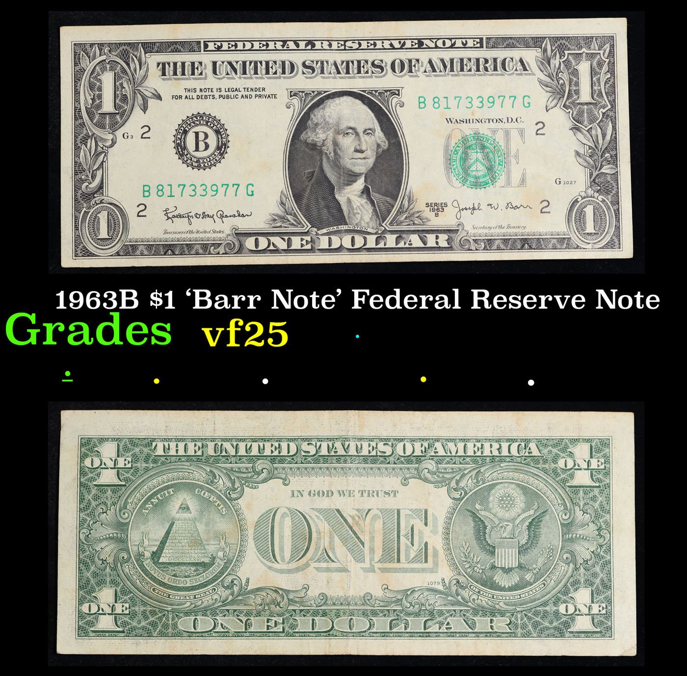 1963B $1 'Barr Note' Federal Reserve Note Grades vf+. Among the most sought-after U.S. paper money of the late 1960's are the short-lived "Barr" Notes. These distinctive $1 Federal Reserve Notes bear the signature of Joseph W. Barr, who served as Secretary of the Treasury during the last 28 days of President Lyndon B. Johnson's administration. Barr was replaced when President Nixon chose a successor. Due to Barr's short term, his signature appeared only on the $1 notes of Series 1963B.
