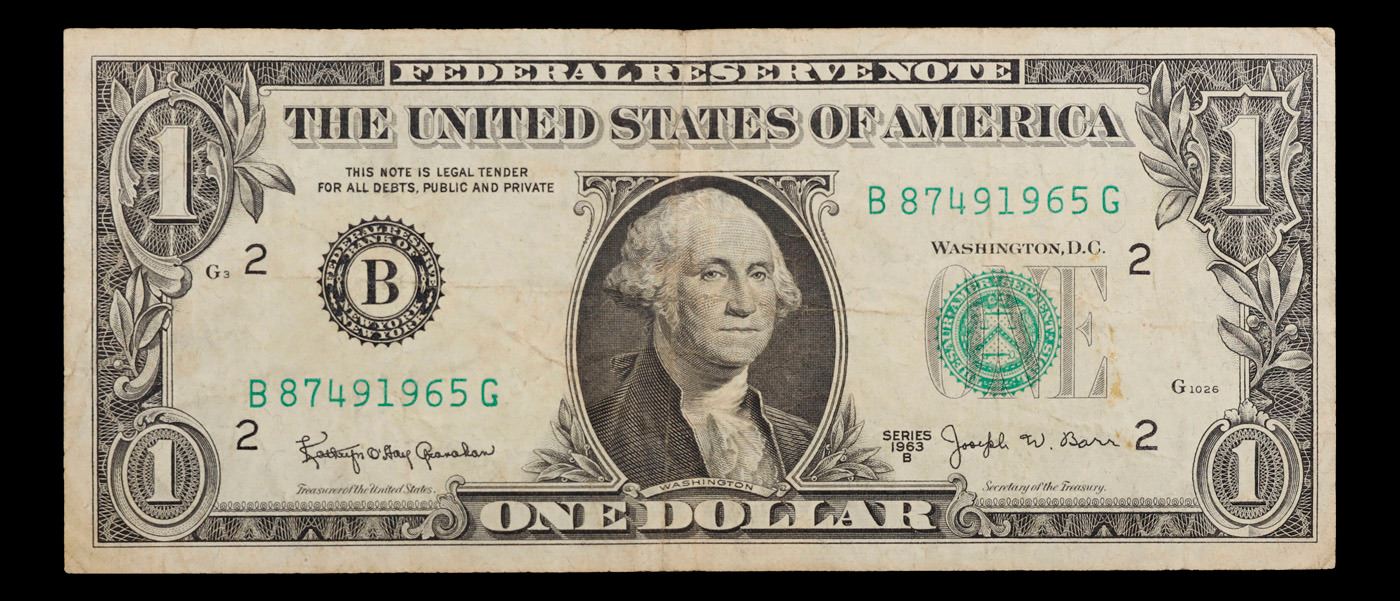 1963B $1 'Barr Note' Federal Reserve Note Grades vf+.