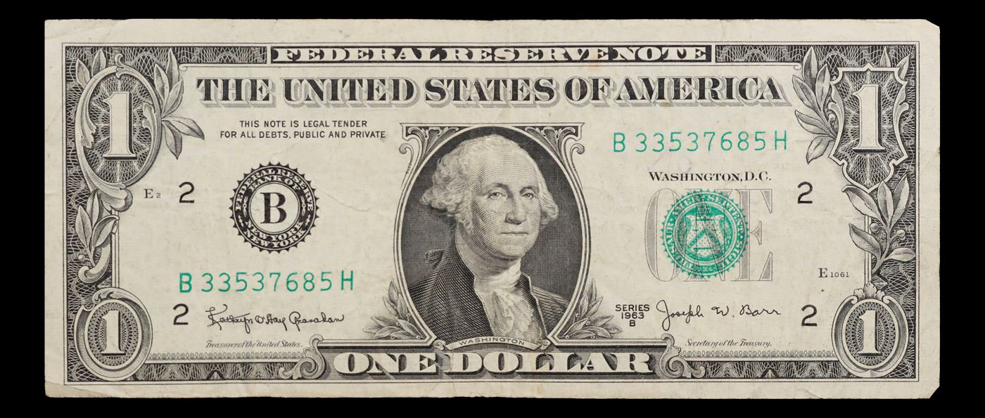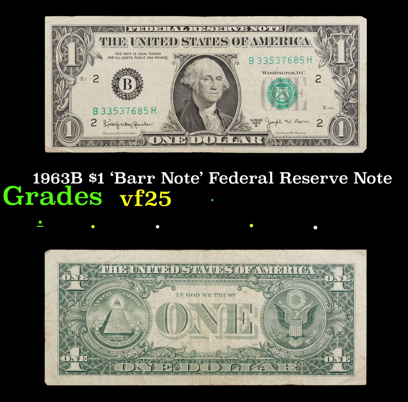 1963B $1 'Barr Note' Federal Reserve Note Grades vf+.