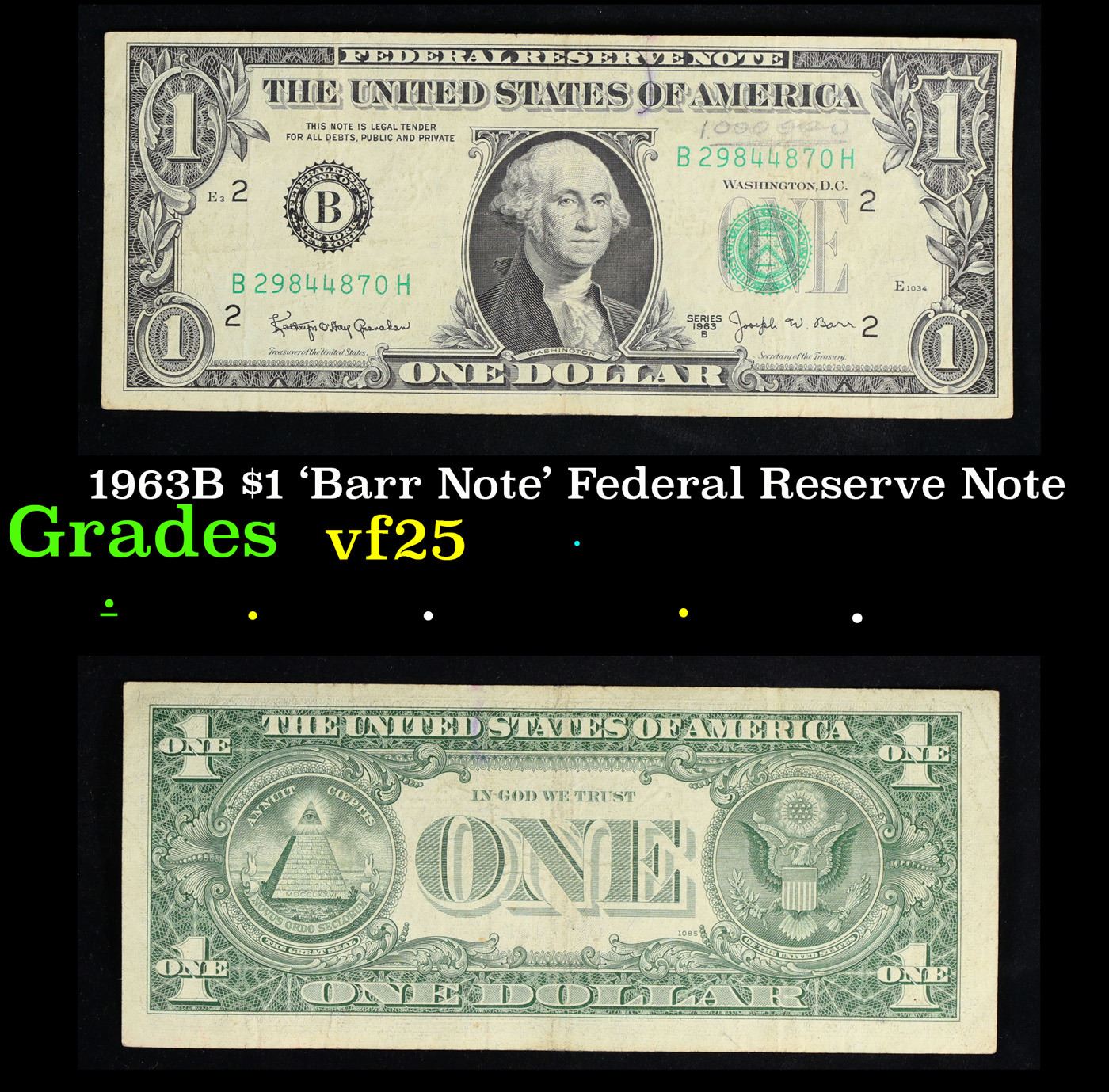 1963B $1 'Barr Note' Federal Reserve Note Grades vf+.