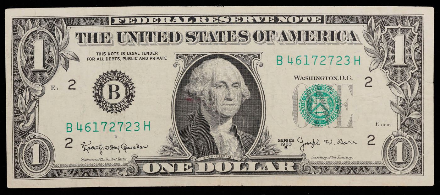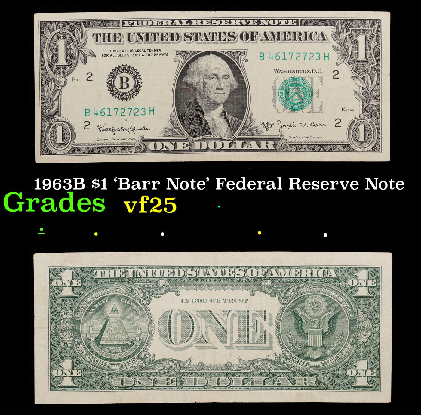 1963B $1 'Barr Note' Federal Reserve Note Grades vf+.