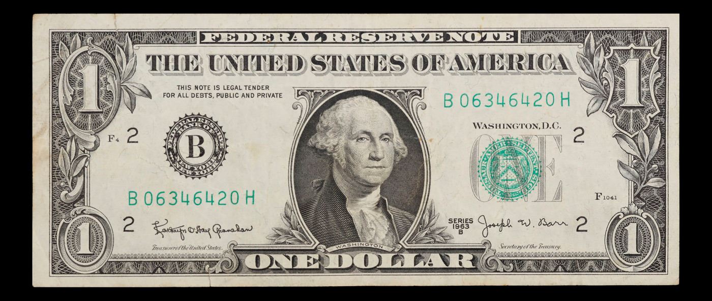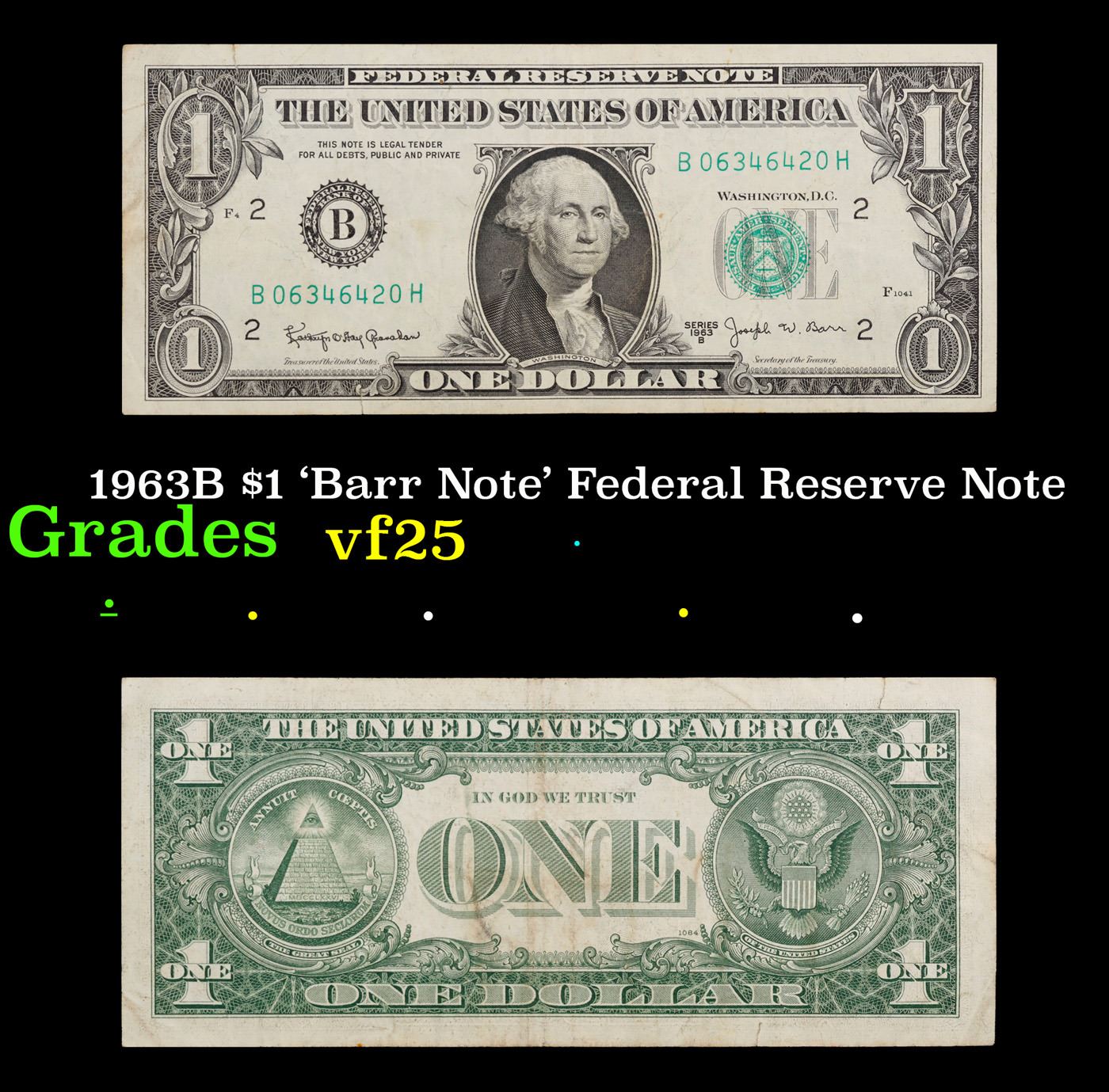1963B $1 'Barr Note' Federal Reserve Note Grades vf+.