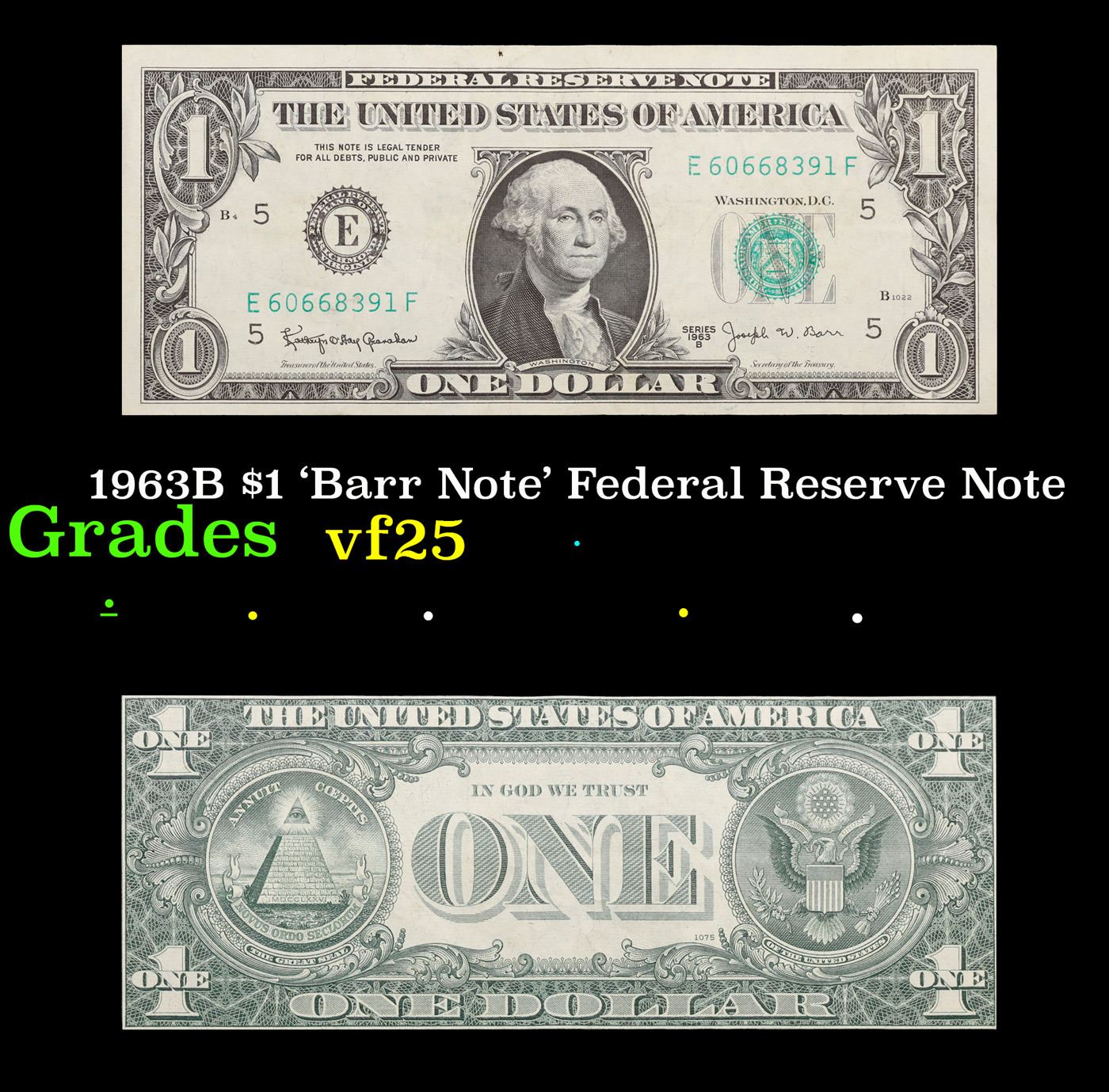 1963B $1 'Barr Note' Federal Reserve Note Grades vf+.