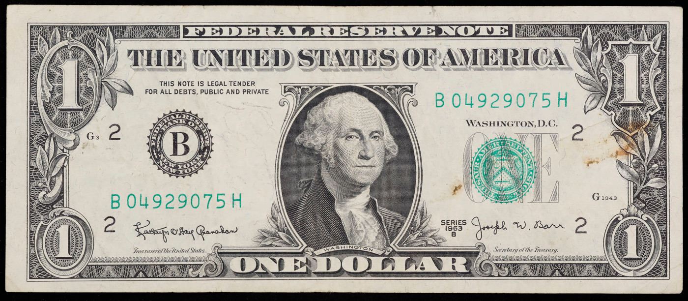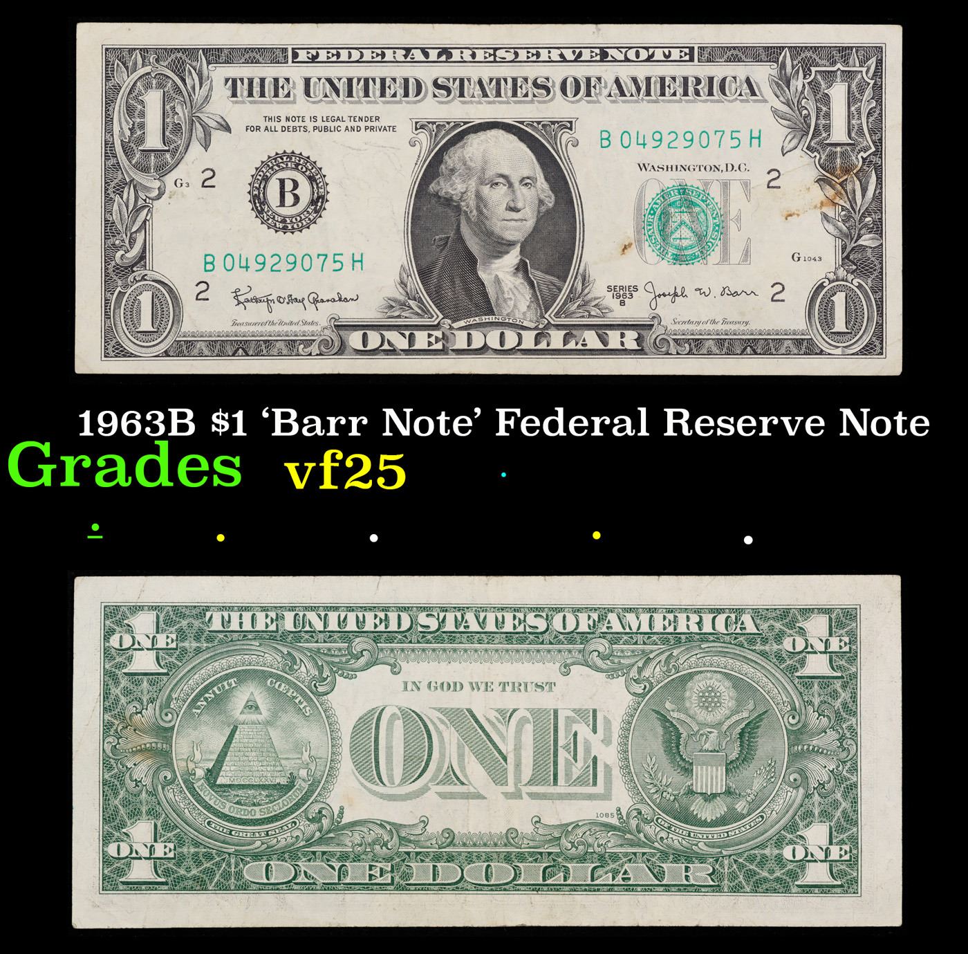 1963B $1 'Barr Note' Federal Reserve Note Grades vf+.