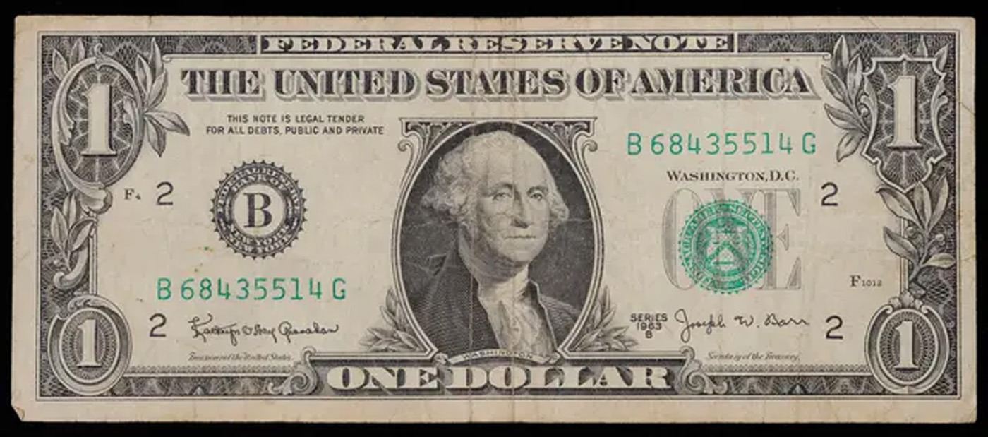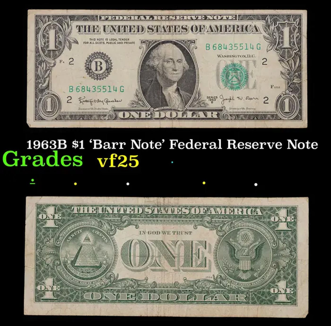 1963B $1 'Barr Note' Federal Reserve Note Grades vf+. Among the most sought-after U.S. paper money of the late 1960's are the short-lived "Barr" Notes. These distinctive $1 Federal Reserve Notes bear the signature of Joseph W. Barr, who served as Secretary of the Treasury during the last 28 days of President Lyndon B. Johnson's administration. Barr was replaced when President Nixon chose a successor. Due to Barr's short term, his signature appeared only on the $1 notes of Series 1963B.