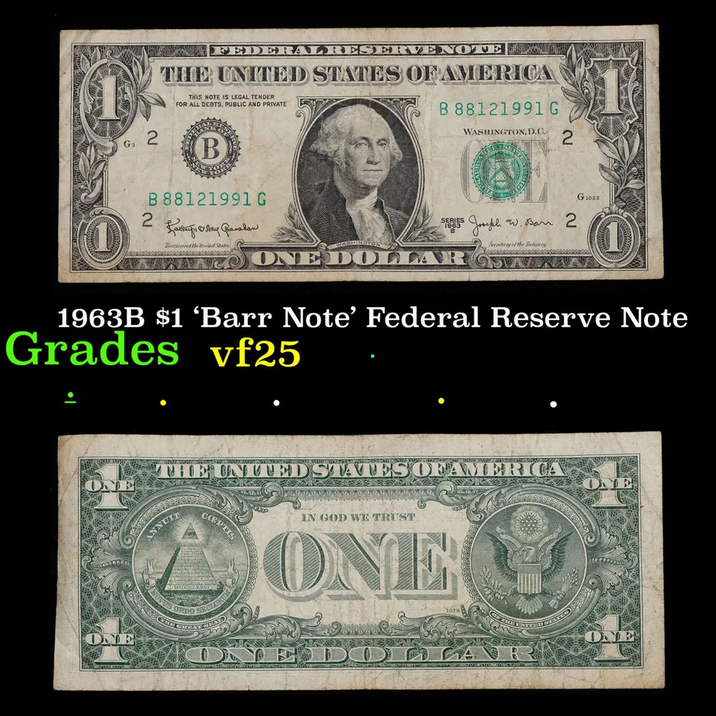 1963B $1 'Barr Note' Federal Reserve Note Grades vf+. Among the most sought-after U.S. paper money of the late 1960's are the short-lived "Barr" Notes. These distinctive $1 Federal Reserve Notes bear the signature of Joseph W. Barr, who served as Secretary of the Treasury during the last 28 days of President Lyndon B. Johnson's administration. Barr was replaced when President Nixon chose a successor. Due to Barr's short term, his signature appeared only on the $1 notes of Series 1963B.