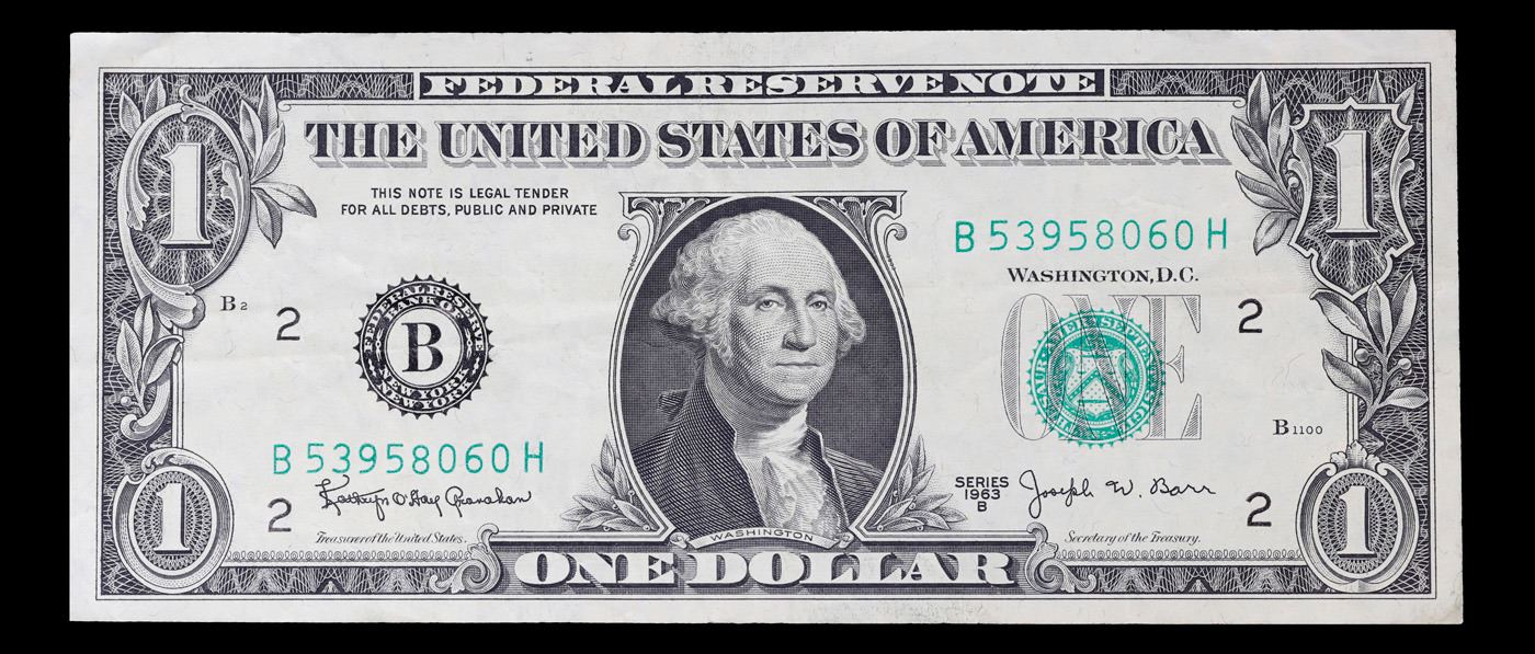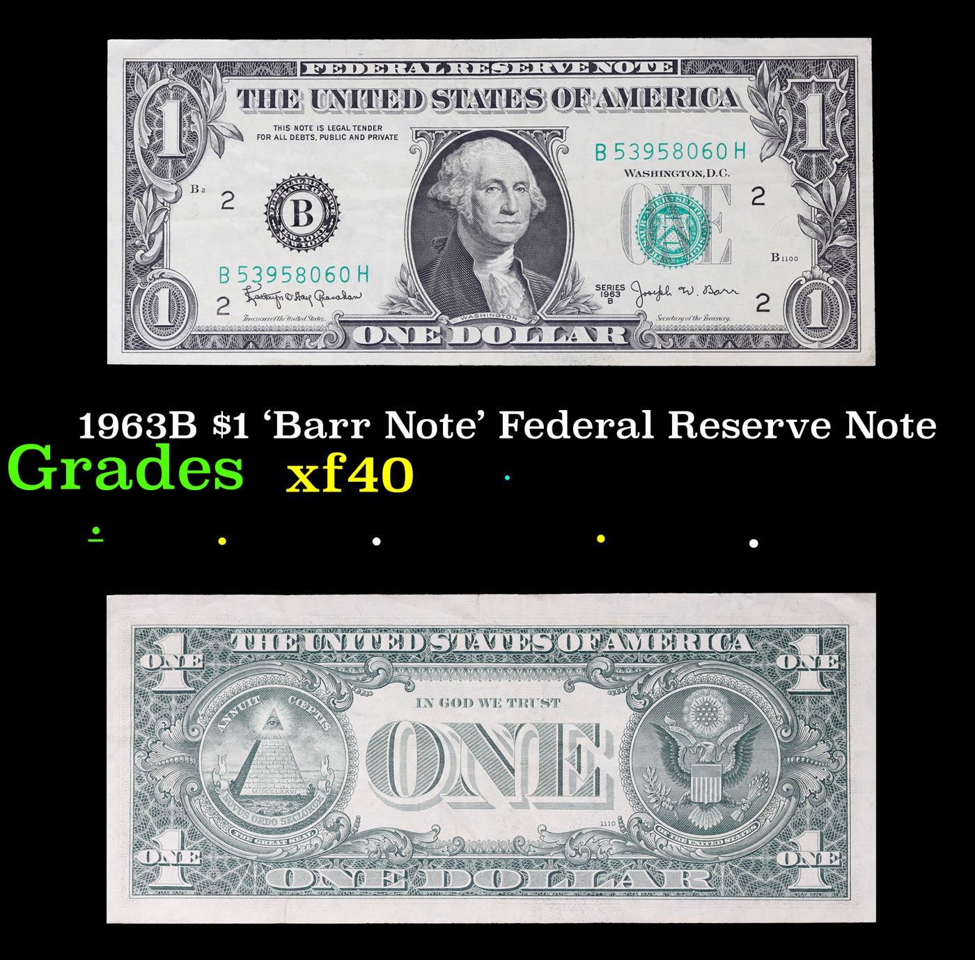 1963B $1 'Barr Note' Federal Reserve Note Grades xf.