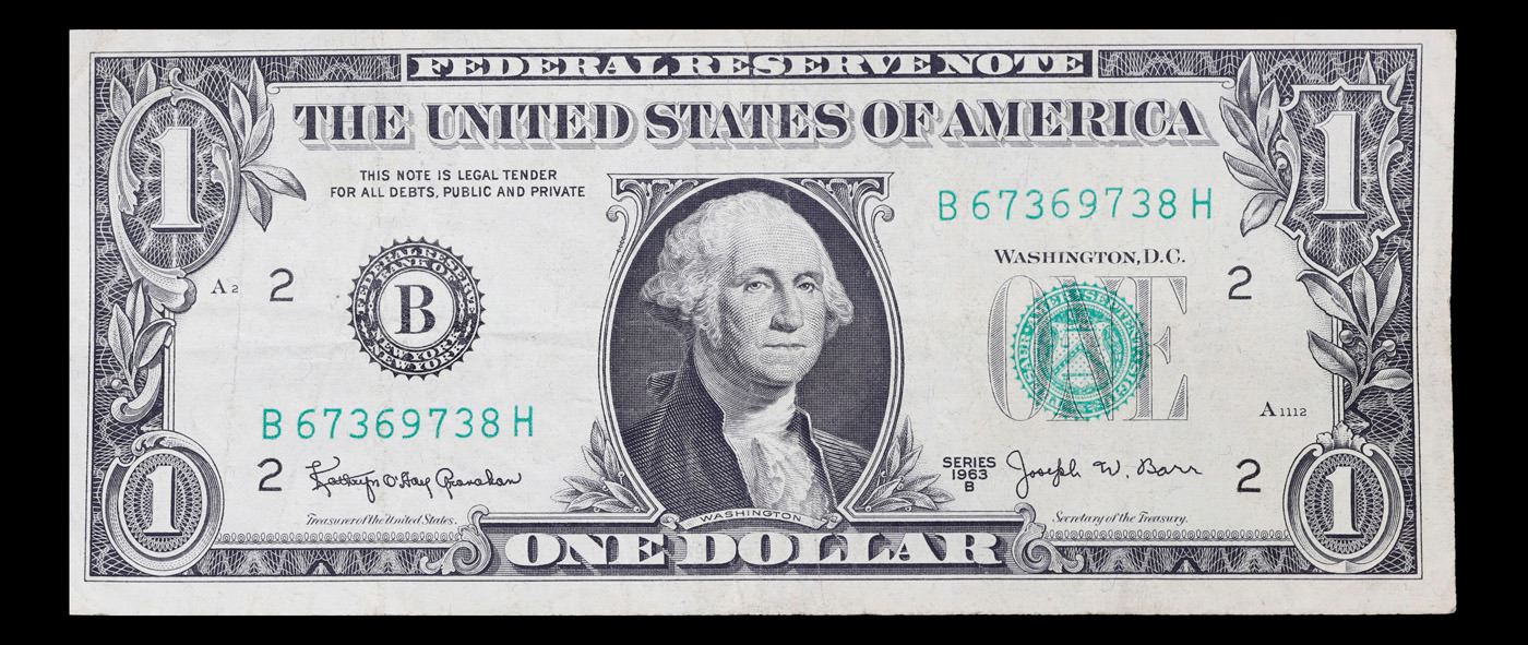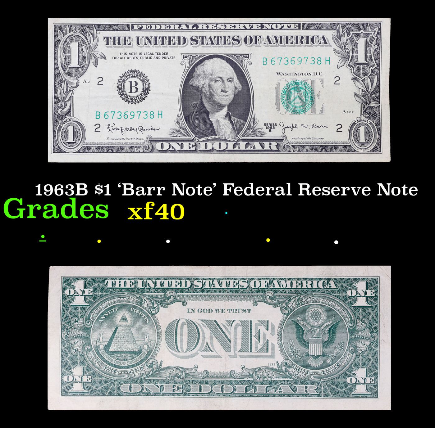1963B $1 'Barr Note' Federal Reserve Note Grades xf.
