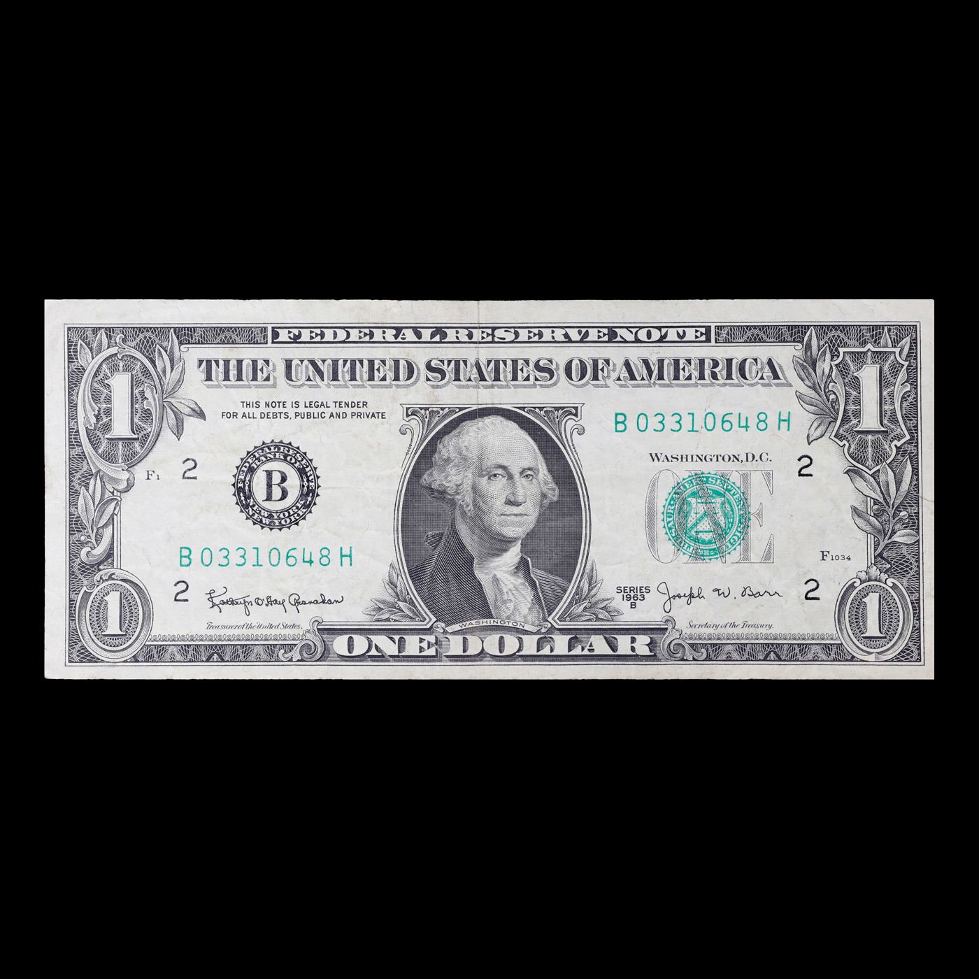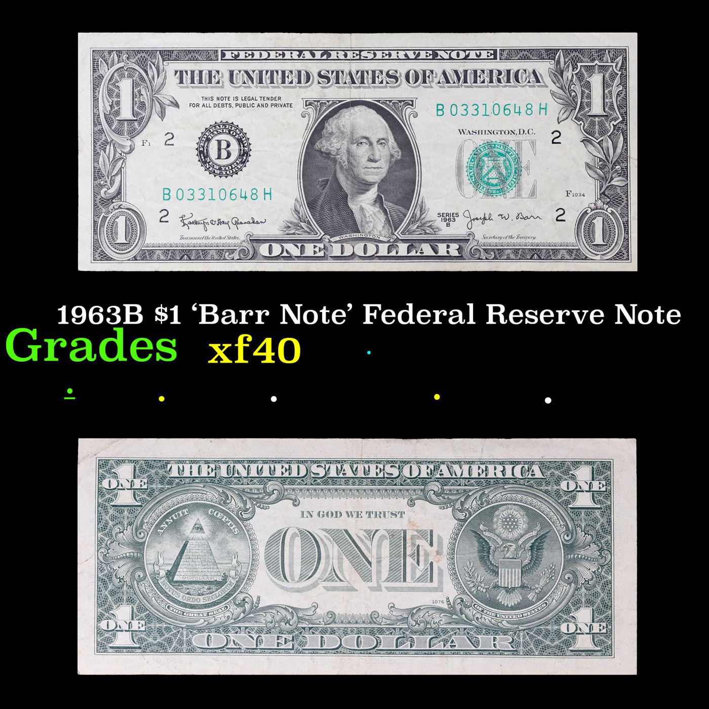 1963B $1 'Barr Note' Federal Reserve Note Grades xf.