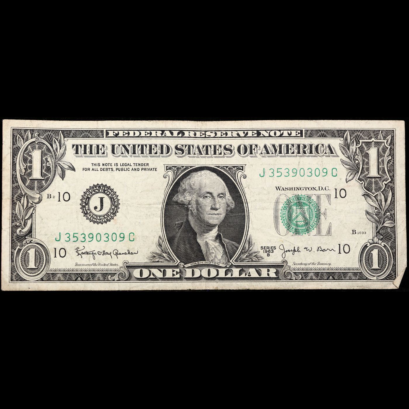 1963B $1 'Barr Note' Federal Reserve Note (Kansas City, MO) Grades vf+