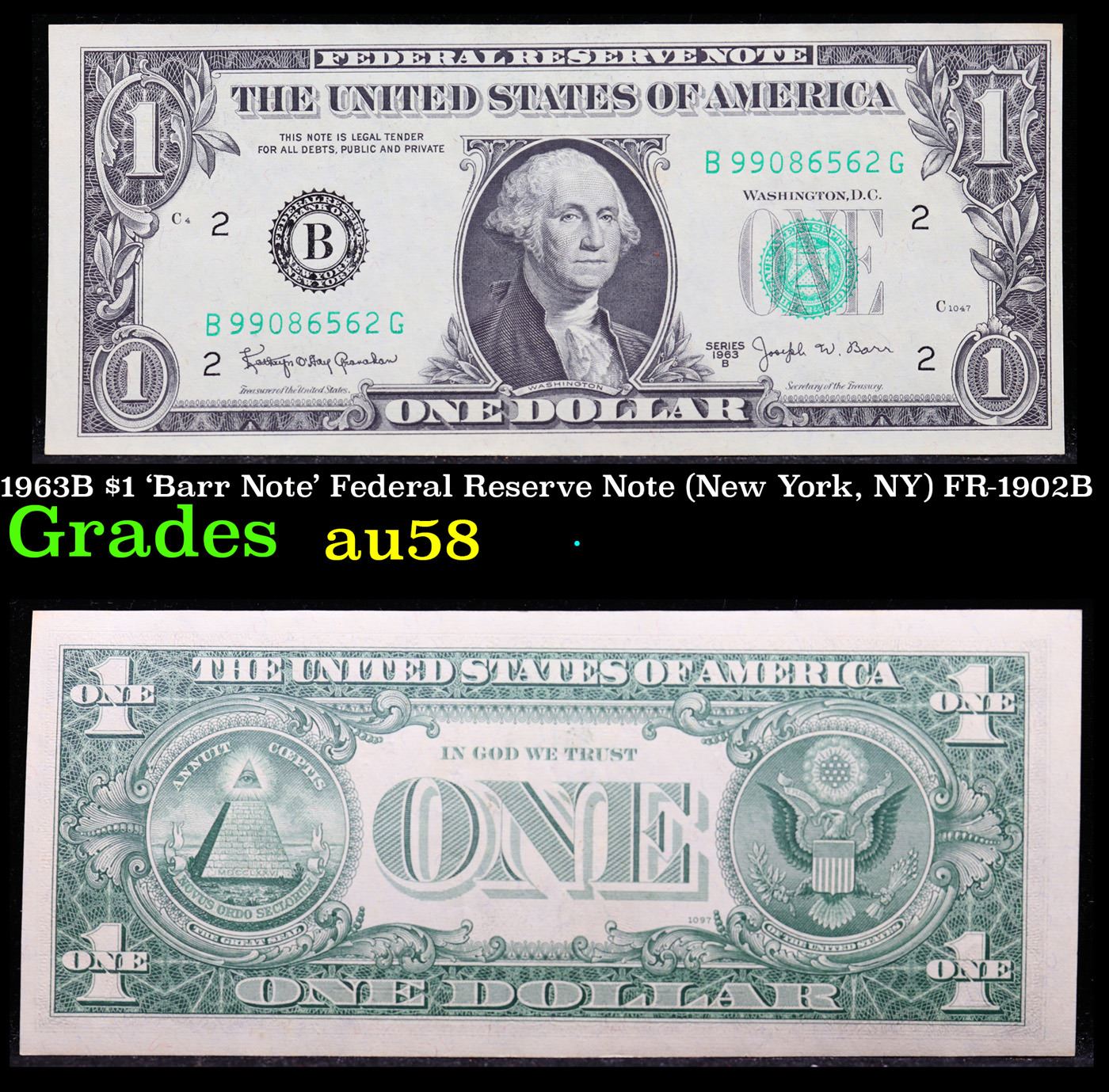 1963B $1 'Barr Note' Federal Reserve Note (New York, NY) FR-1902B Grades Choice AU/BU Slider