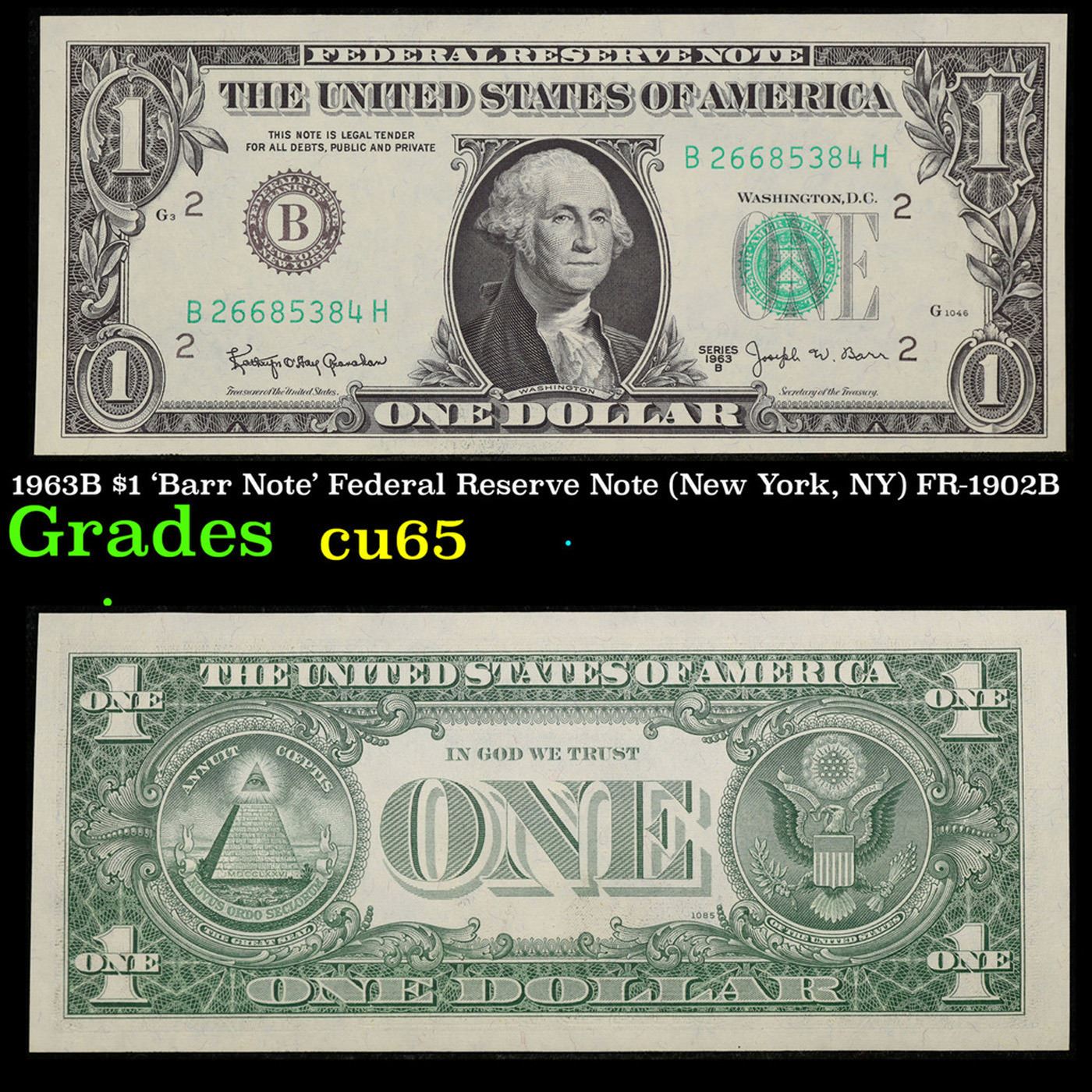 1963B $1 'Barr Note' Federal Reserve Note (New York, NY) FR-1902B Grades Gem CU