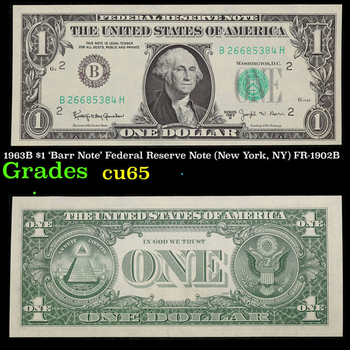 1963B $1 'Barr Note' Federal Reserve Note (New York, NY) FR-1902B Grades Gem CU