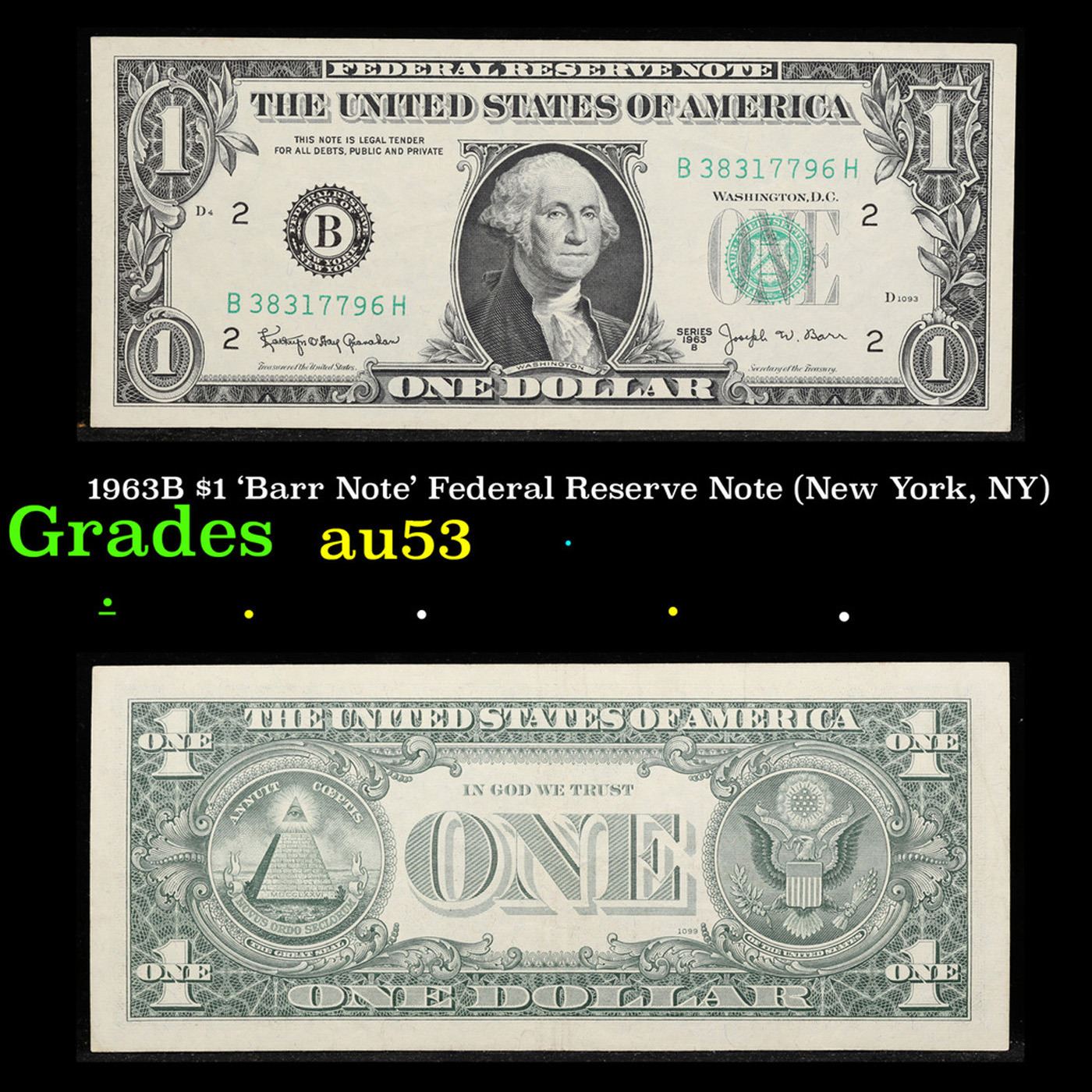 1963B $1 'Barr Note' Federal Reserve Note (New York, NY) Grades Select AU