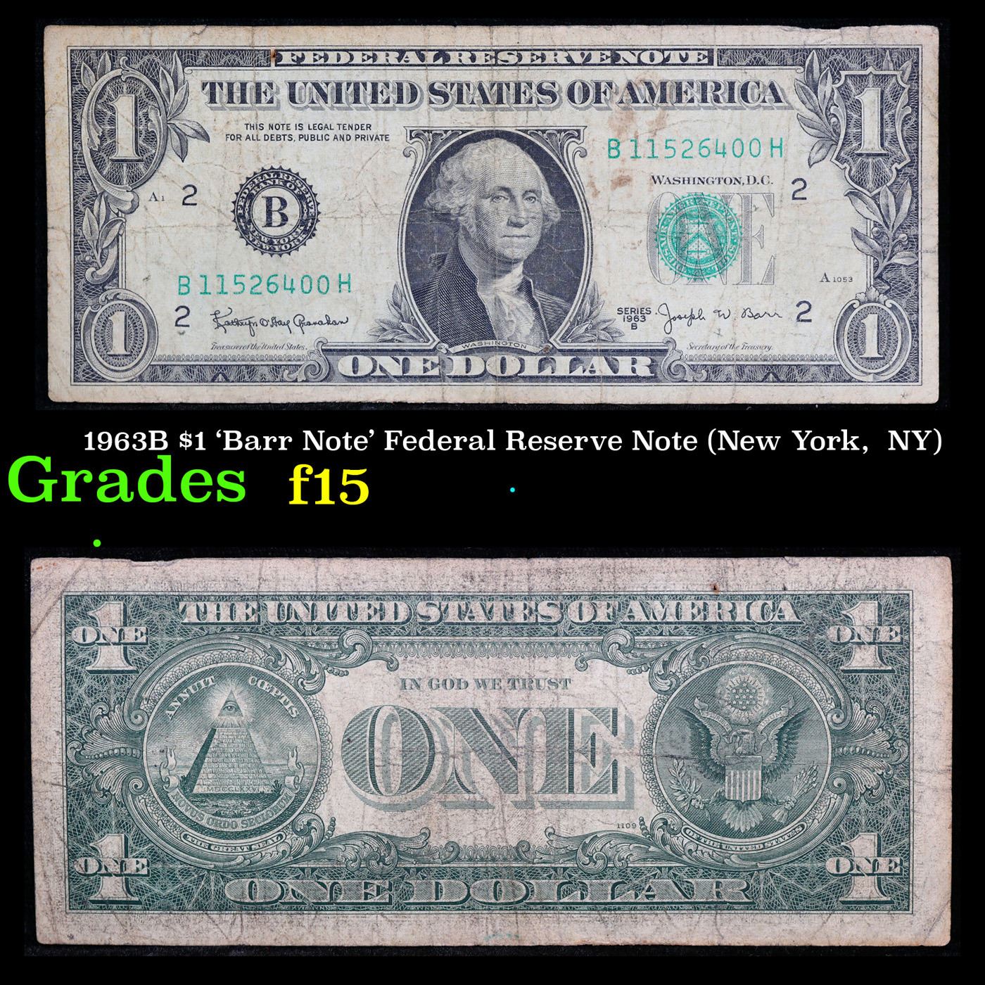 1963B $1 'Barr Note' Federal Reserve Note (New York, NY) Grades f+