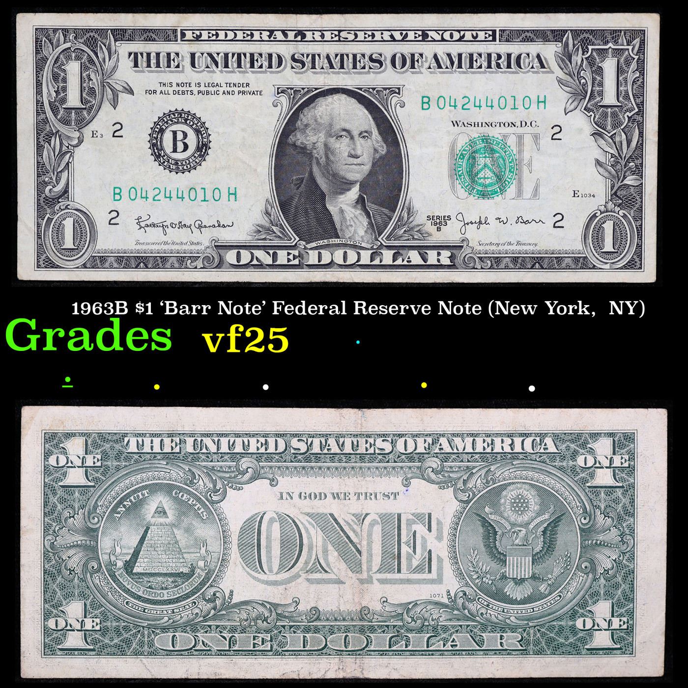 1963B $1 'Barr Note' Federal Reserve Note (New York, NY) Grades vf+