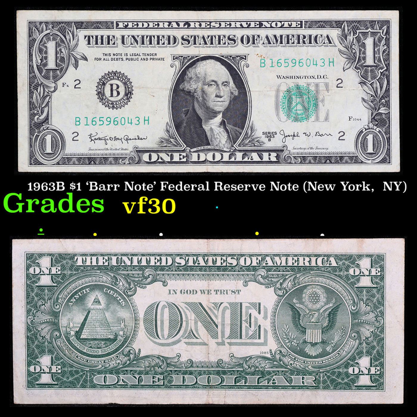 1963B $1 'Barr Note' Federal Reserve Note (New York, NY) Grades vf++