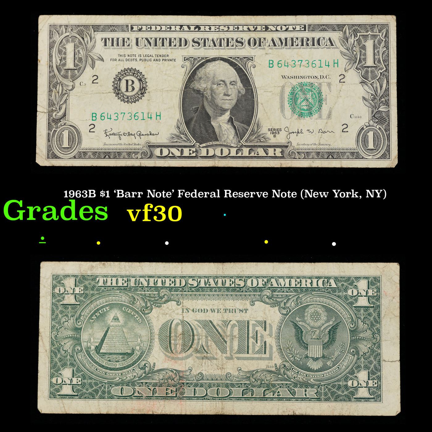 1963B $1 'Barr Note' Federal Reserve Note (New York, NY) Grades vf++
