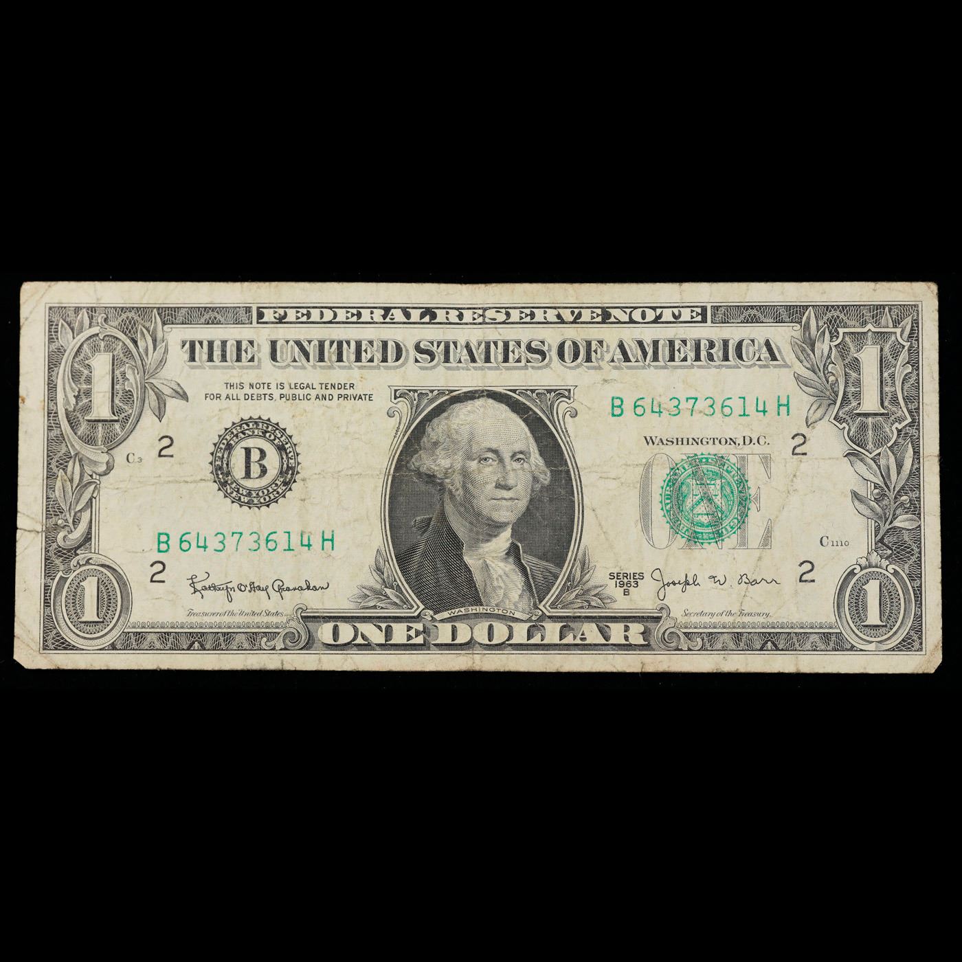 1963B $1 'Barr Note' Federal Reserve Note (New York, NY) Grades vf++. Among the most sought-after U.S. paper money of the late 1960s are the short-lived "Barr" Notes. These distinctive $1 Federal Reserve Notes bear the signature of Joseph W. Barr, who served as Secretary of the Treasury during the last 28 days of President Lyndon B. Johnson's administration. Barr was replaced when President Nixon chose a successor. Due to Barr's short term, his signature appeared only on the $1 notes of Series 1963B.