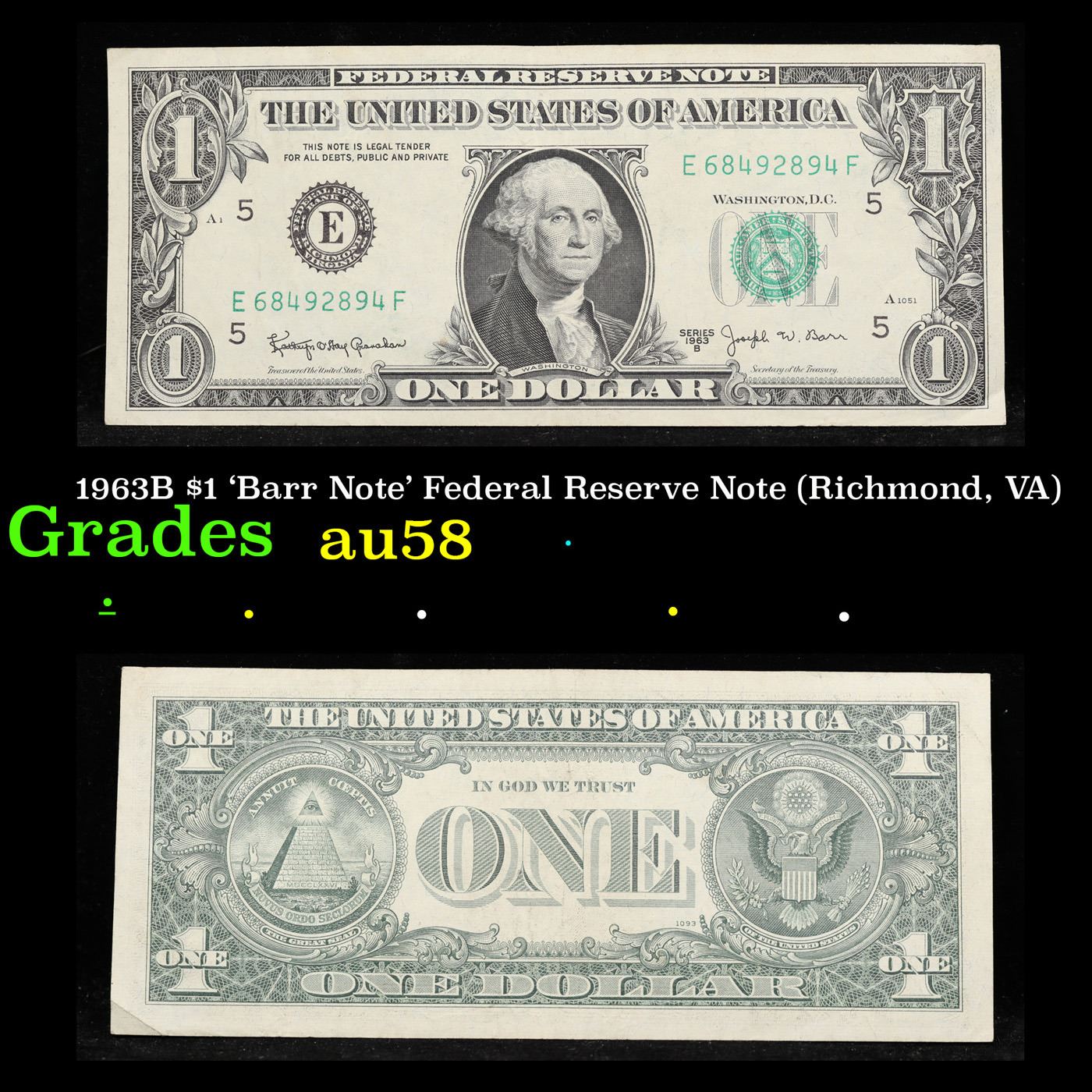 1963B $1 'Barr Note' Federal Reserve Note (Richmond, VA) Grades Choice AU/BU Slider