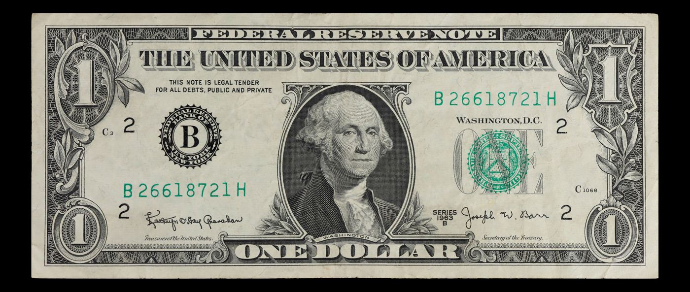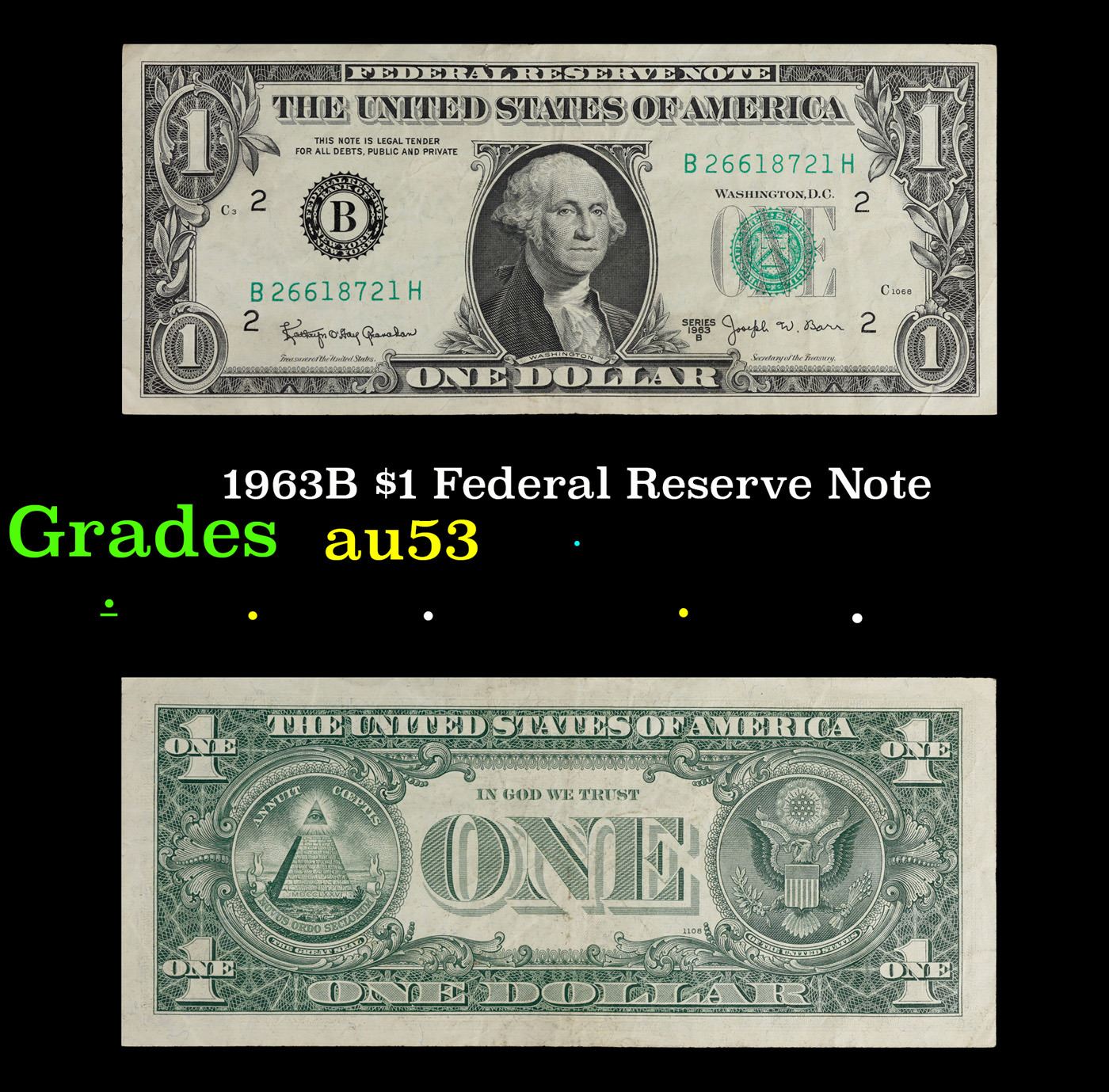 1963B $1 Federal Reserve Note Grades Select AU.