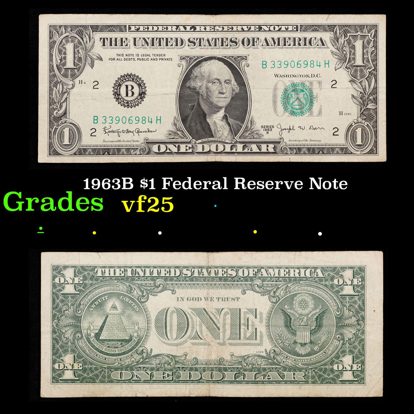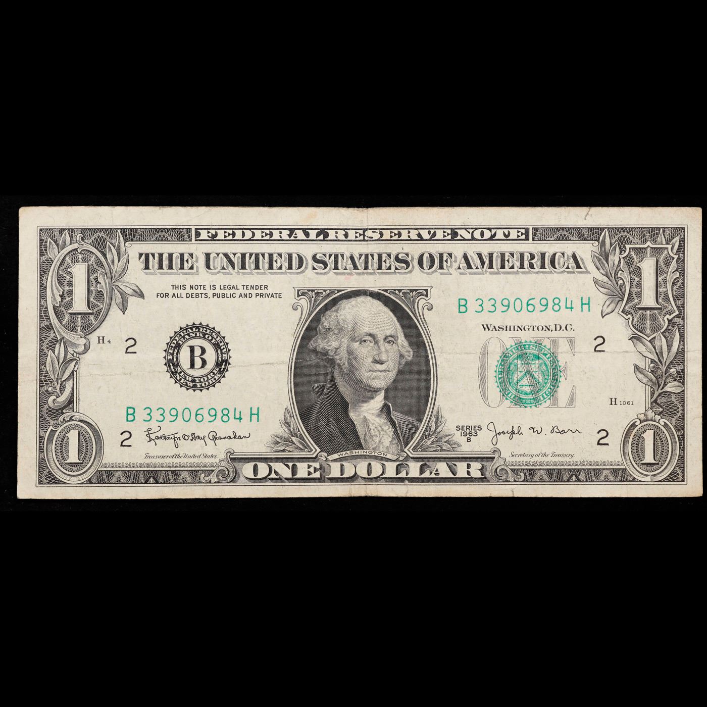 1963B $1 Federal Reserve Note Grades vf+.