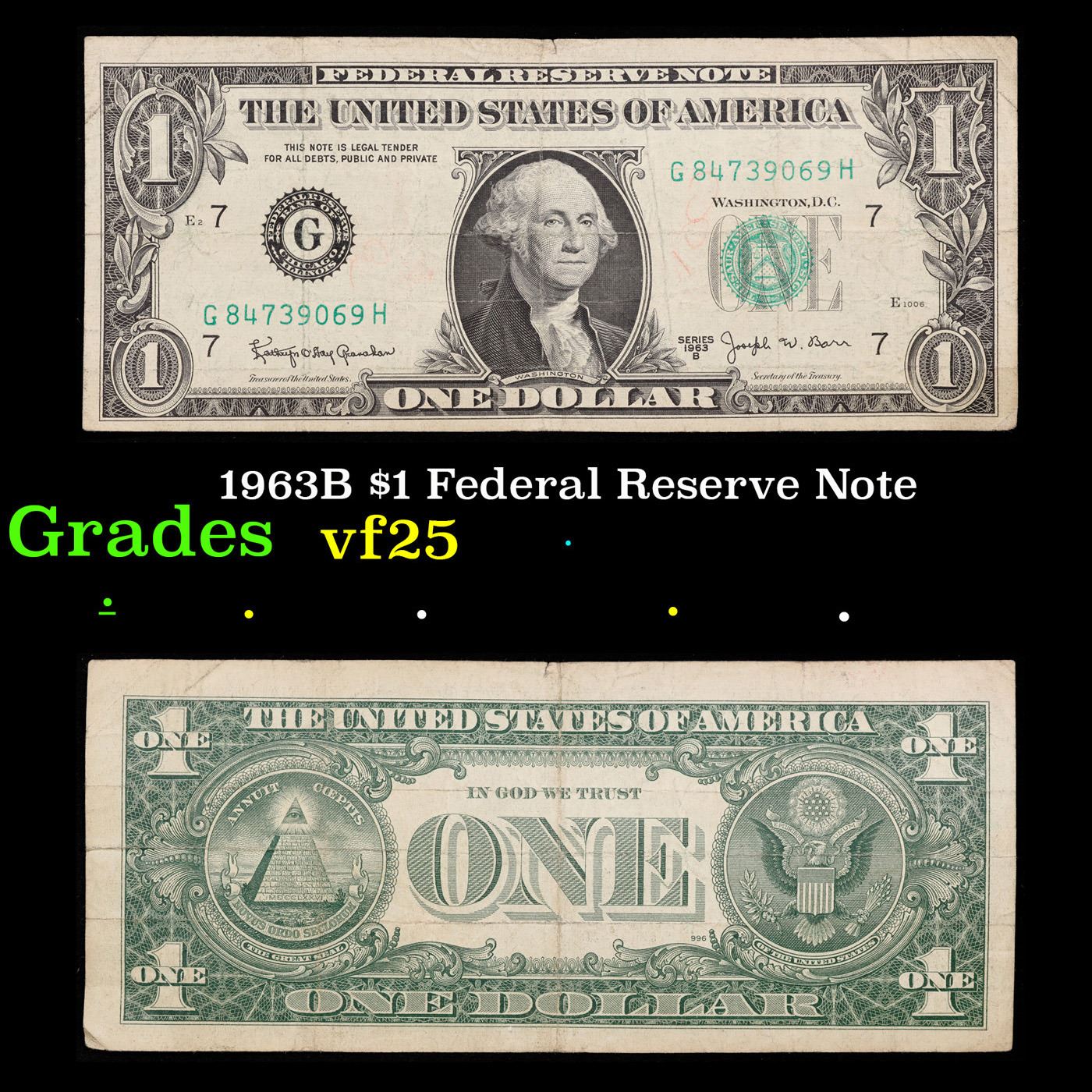 1963B $1 Federal Reserve Note Grades vf+.