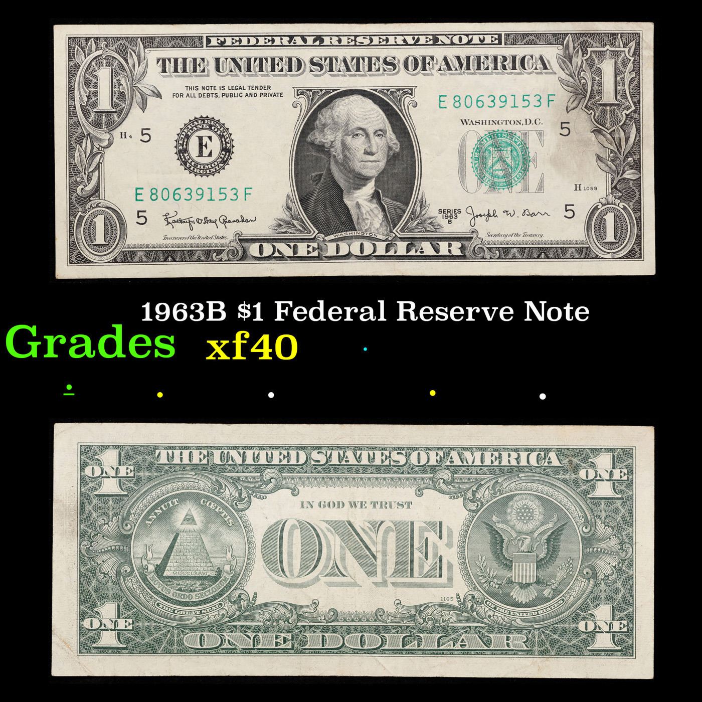 1963B $1 Federal Reserve Note Grades xf.