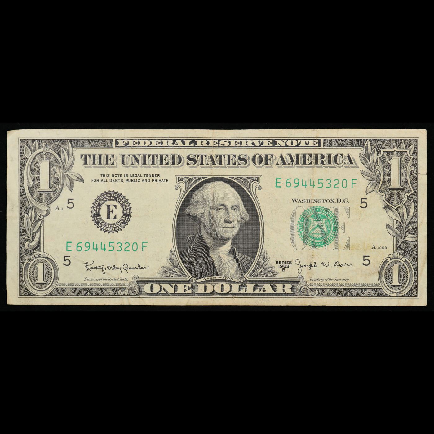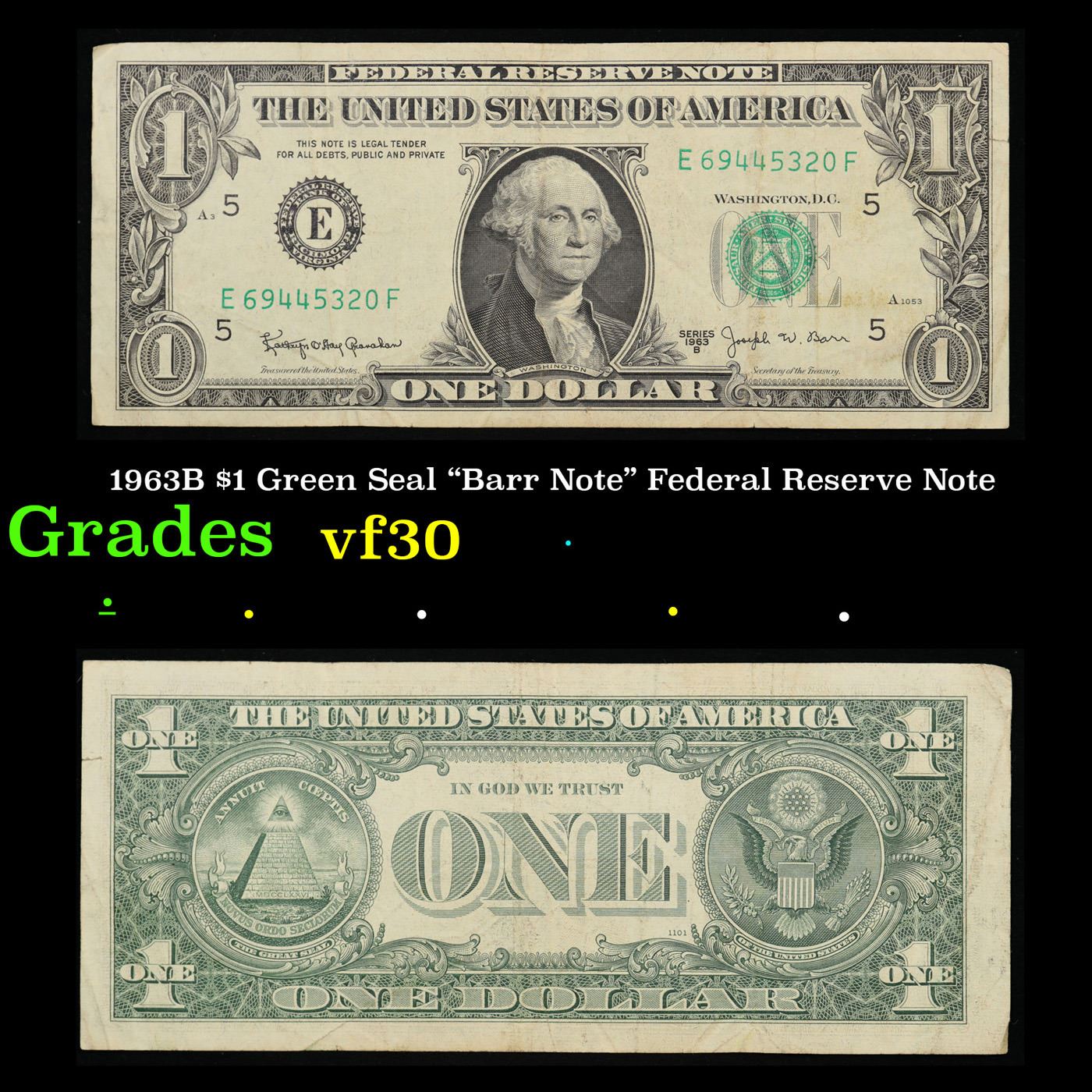 1963B $1 Green Seal "Barr Note" Federal Reserve Note Grades vf++. Among the most sought-after U.S. paper money of the late 1960s are the short-lived "Barr" Notes. These distinctive $1 Federal Reserve Notes bear the signature of Joseph W. Barr, who served as Secretary of the Treasury during the last 28 days of President Lyndon B. Johnson's administration. Barr was replaced when President Nixon chose a successor. Due to Barr's short term, his signature appeared only on the $1 notes of Series 1963B.