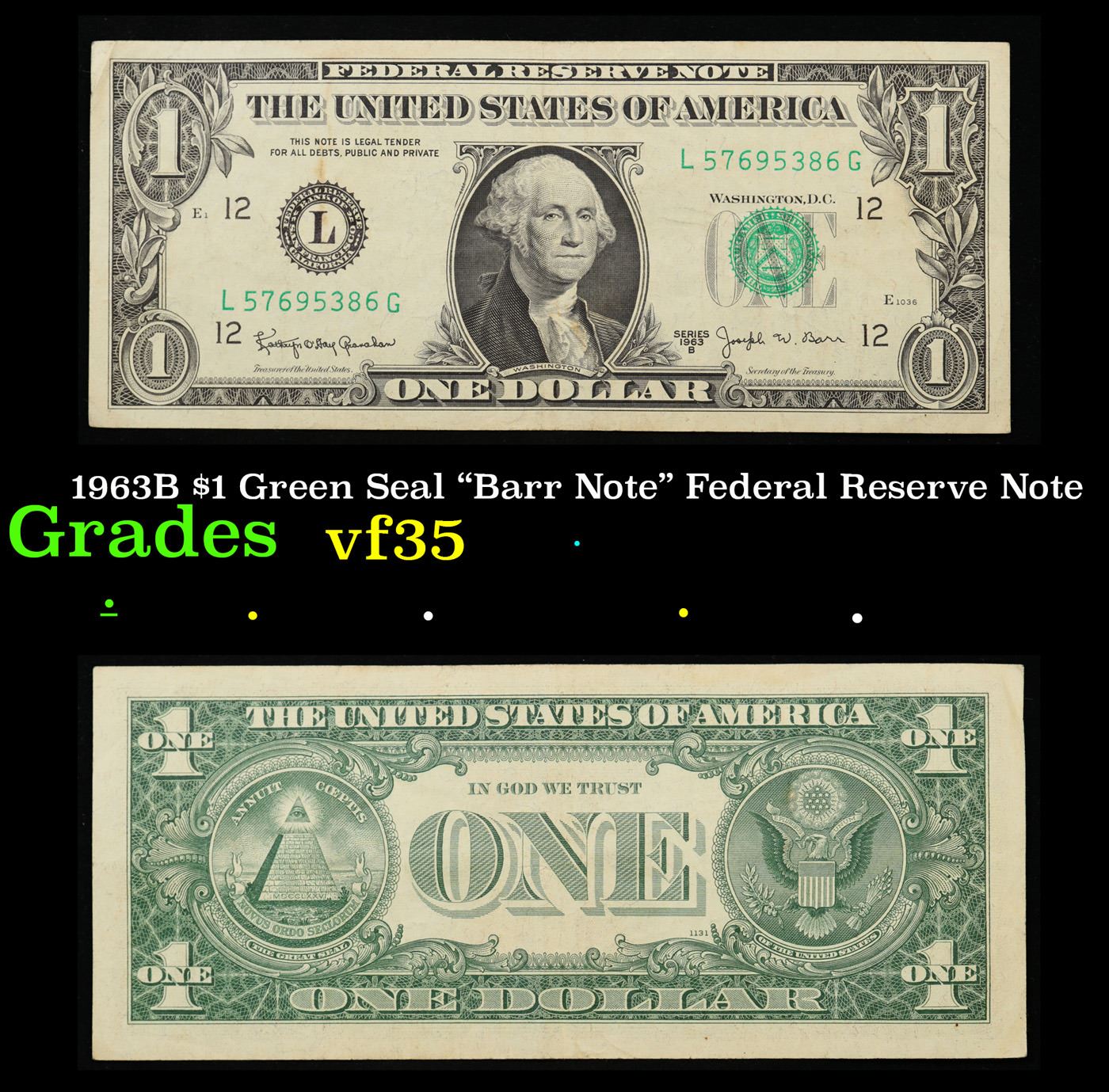 1963B $1 Green Seal "Barr Note" Federal Reserve Note Grades vf++. Among the most sought-after U.S. paper money of the late 1960s are the short-lived "Barr" Notes. These distinctive $1 Federal Reserve Notes bear the signature of Joseph W. Barr, who served as Secretary of the Treasury during the last 28 days of President Lyndon B. Johnson's administration. Barr was replaced when President Nixon chose a successor. Due to Barr's short term, his signature appeared only on the $1 notes of Series 1963B.