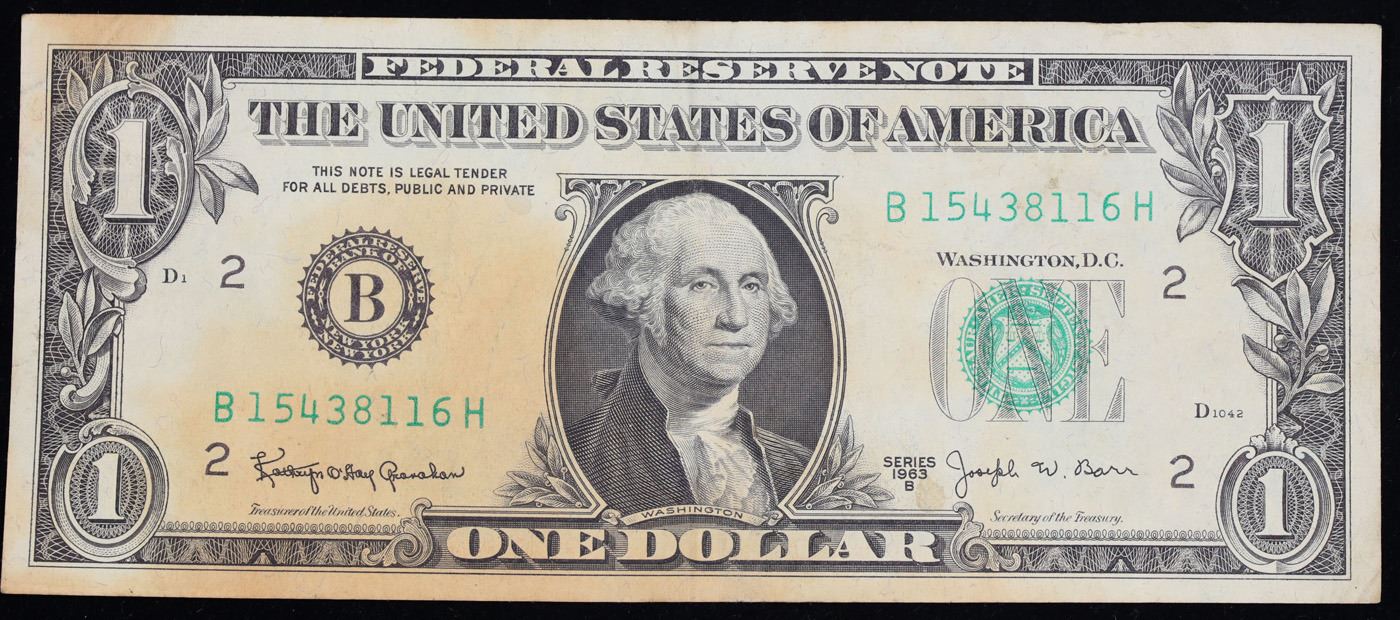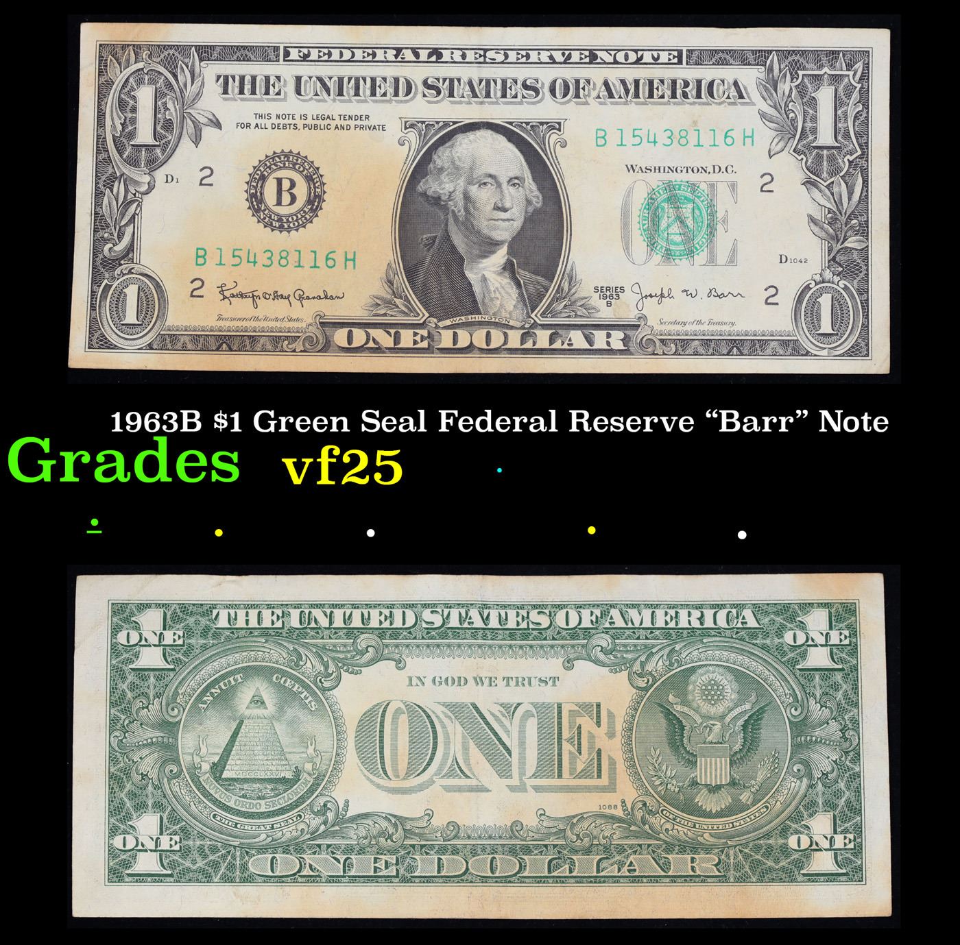1963B $1 Green Seal Federal Reserve "Barr" Note Grades vf+. Among the most sought-after U.S. paper money of the late 1960's are the short-lived "Barr" Notes. These distinctive $1 Federal Reserve Notes bear the signature of Joseph W. Barr, who served as Secretary of the Treasury during the last 28 days of President Lyndon B. Johnson's administration. Barr was replaced when President Nixon chose a successor. Due to Barr's short term, his signature appeared only on the $1 notes of Series 1963B.