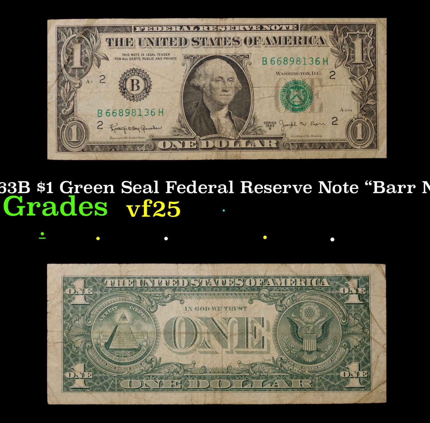 1963B "Barr Note" $1 Green Seal Federal Reserve Note Grades vf+. Among the most sought-after U.S. paper money of the late 1960s are the short-lived "Barr" Notes. These distinctive $1 Federal Reserve Notes bear the signature of Joseph W. Barr, who served as Secretary of the Treasury during the last 28 days of President Lyndon B. Johnson's administration. Barr was replaced when President Nixon chose a successor. Due to Barr's short term, his signature appeared only on the $1 notes of Series 1963B.