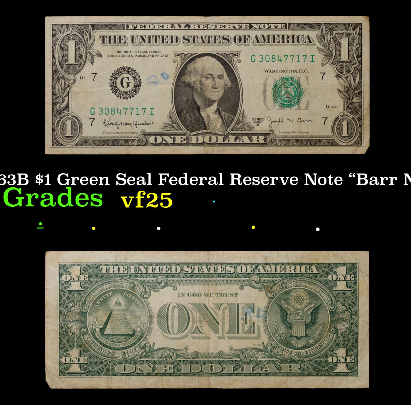 1963B "Barr Note" $1 Green Seal Federal Reserve Note Grades vf+. Among the most sought-after U.S. paper money of the late 1960s are the short-lived "Barr" Notes. These distinctive $1 Federal Reserve Notes bear the signature of Joseph W. Barr, who served as Secretary of the Treasury during the last 28 days of President Lyndon B. Johnson's administration. Barr was replaced when President Nixon chose a successor. Due to Barr's short term, his signature appeared only on the $1 notes of Series 1963B.
