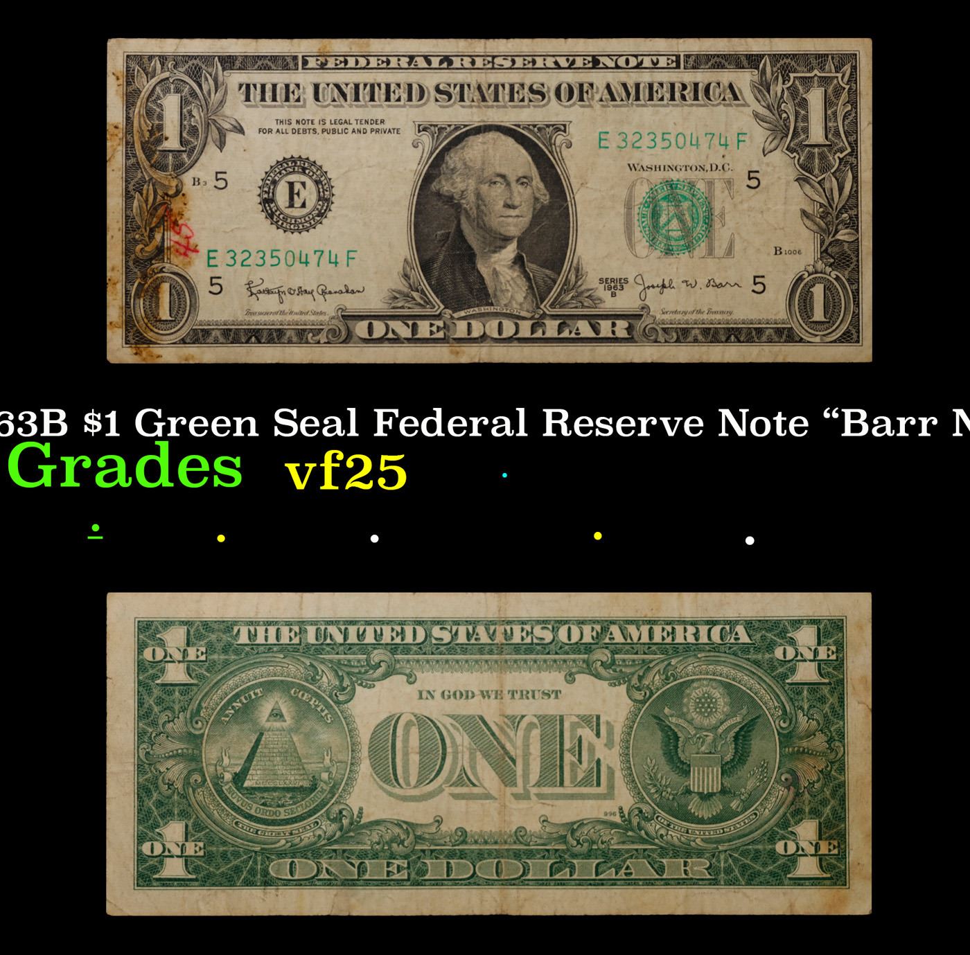 1963B "Barr Note" $1 Green Seal Federal Reserve Note Grades vf+. Among the most sought-after U.S. paper money of the late 1960s are the short-lived "Barr" Notes. These distinctive $1 Federal Reserve Notes bear the signature of Joseph W. Barr, who served as Secretary of the Treasury during the last 28 days of President Lyndon B. Johnson's administration. Barr was replaced when President Nixon chose a successor. Due to Barr's short term, his signature appeared only on the $1 notes of Series 1963B.