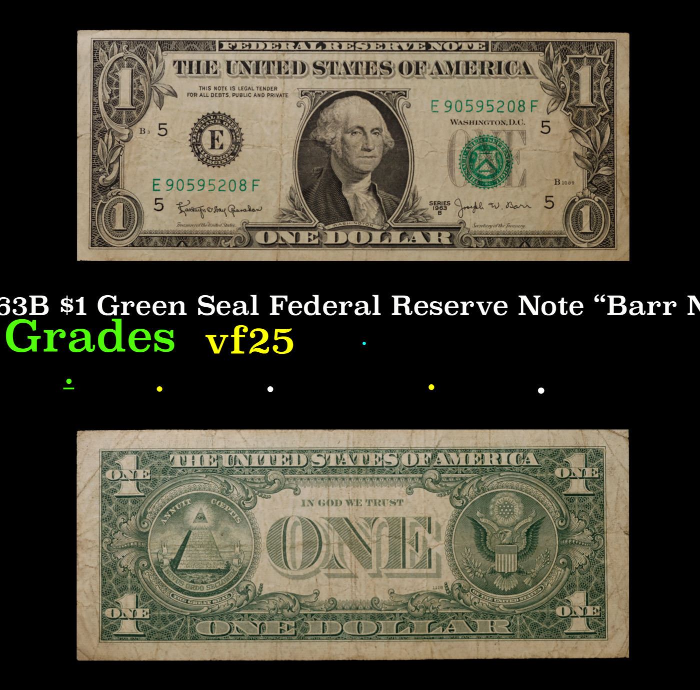 1963B "Barr Note" $1 Green Seal Federal Reserve Note Grades vf+. Among the most sought-after U.S. paper money of the late 1960s are the short-lived "Barr" Notes. These distinctive $1 Federal Reserve Notes bear the signature of Joseph W. Barr, who served as Secretary of the Treasury during the last 28 days of President Lyndon B. Johnson's administration. Barr was replaced when President Nixon chose a successor. Due to Barr's short term, his signature appeared only on the $1 notes of Series 1963B.