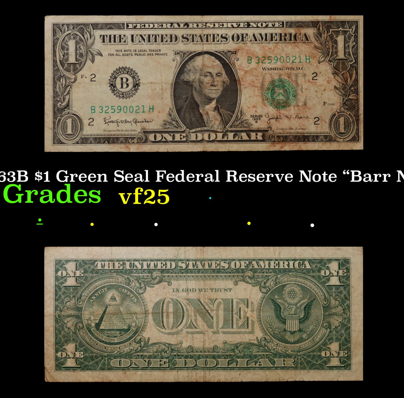 1963B "Barr Note" $1 Green Seal Federal Reserve Note Grades vf+. Among the most sought-after U.S. paper money of the late 1960s are the short-lived "Barr" Notes. These distinctive $1 Federal Reserve Notes bear the signature of Joseph W. Barr, who served as Secretary of the Treasury during the last 28 days of President Lyndon B. Johnson's administration. Barr was replaced when President Nixon chose a successor. Due to Barr's short term, his signature appeared only on the $1 notes of Series 1963B.