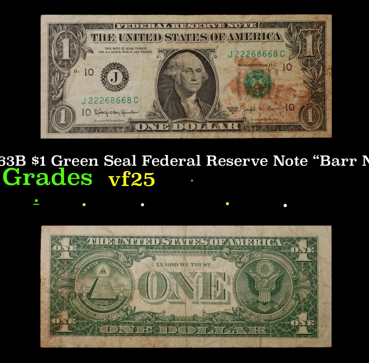 1963B "Barr Note" $1 Green Seal Federal Reserve Note Grades vf+. Among the most sought-after U.S. paper money of the late 1960s are the short-lived "Barr" Notes. These distinctive $1 Federal Reserve Notes bear the signature of Joseph W. Barr, who served as Secretary of the Treasury during the last 28 days of President Lyndon B. Johnson's administration. Barr was replaced when President Nixon chose a successor. Due to Barr's short term, his signature appeared only on the $1 notes of Series 1963B.