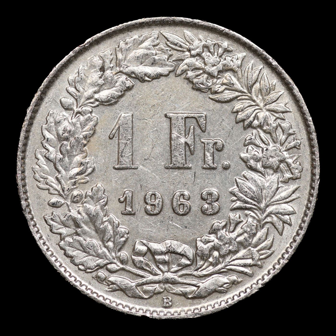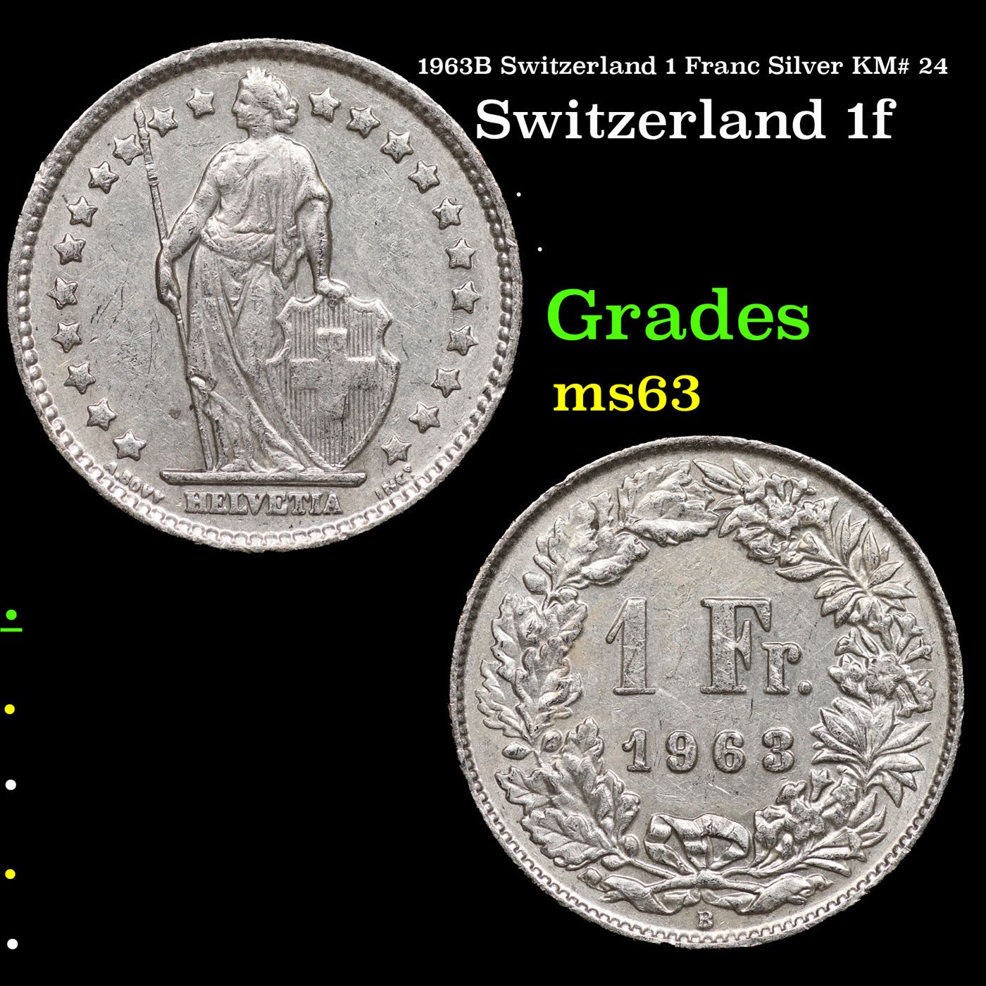 1963B Switzerland 1 Franc Silver KM# 24 Grades Select Unc.