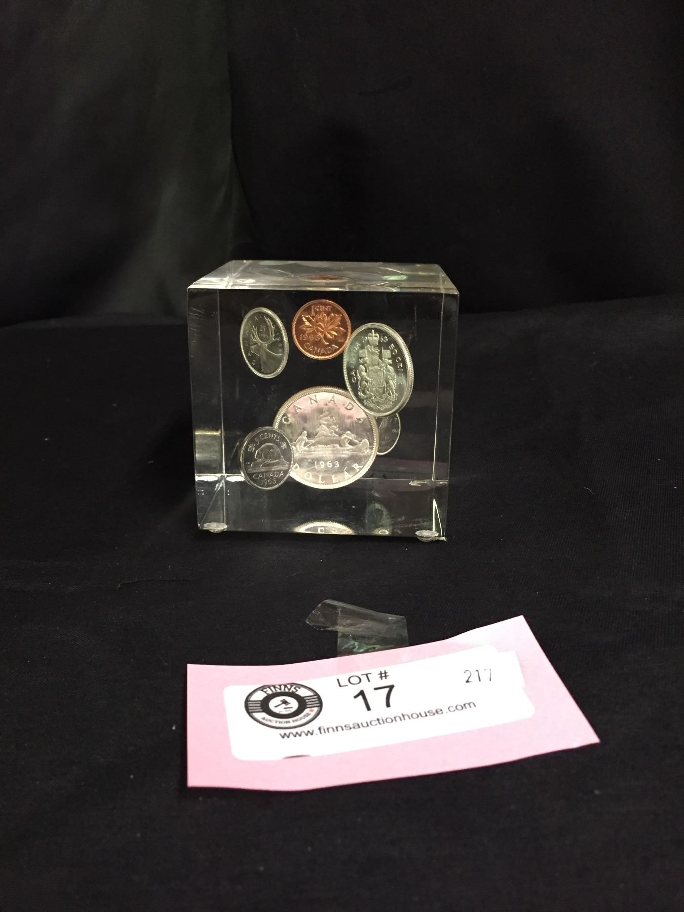 1963Canadian Silver Coin Set in a Clear Resin as a Paperweight
