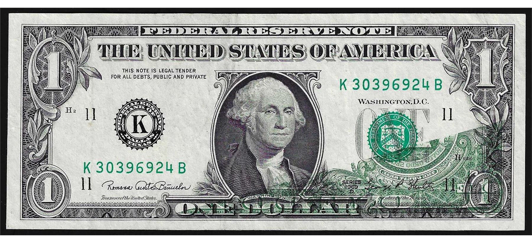 One 1963D $1 Federal Reserve Note ERROR Partial Offset.