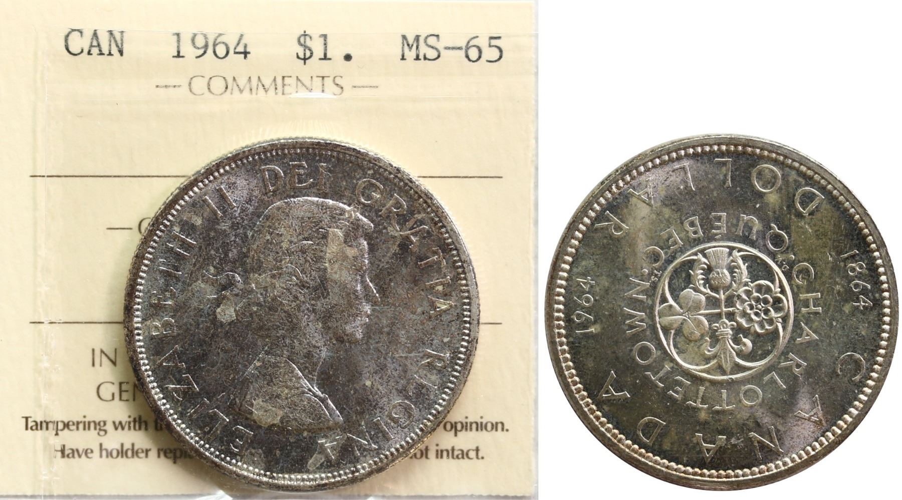 1964 $1 ICCS Gem Mint State-65, Light green and russet tones over full underlying lustre.