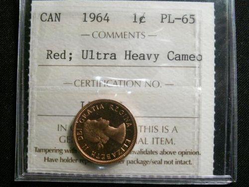 1964 1¢ ICCS PL65 Red PQ "ULTRA HEAVY CAMEO". A very flashy coin! Excellent strike and clean fields.