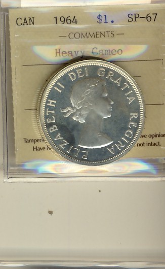 1964 $1 ICCS PL67 Heavy Cameo. Solo highest graded by ICCS. Blast white.