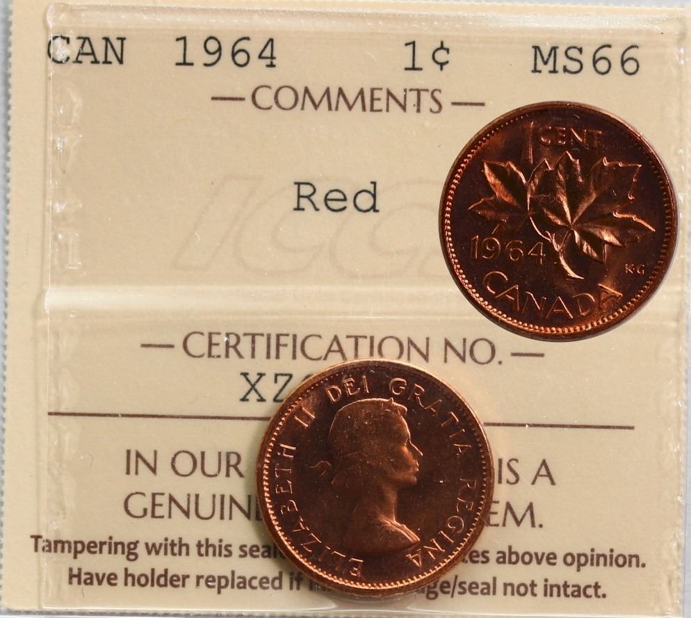 1964 1¢ ICCS Superb Gem Mint State-66 Full Red.