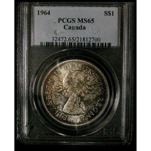 1964 $1 PCGS MS-65. Nicely toned. The coin is fully struck and has full lustre.