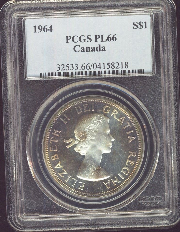1964 $1 PCGS PL66. Should designate Heavy Cameo.